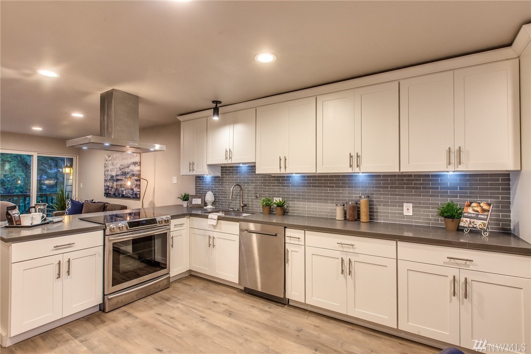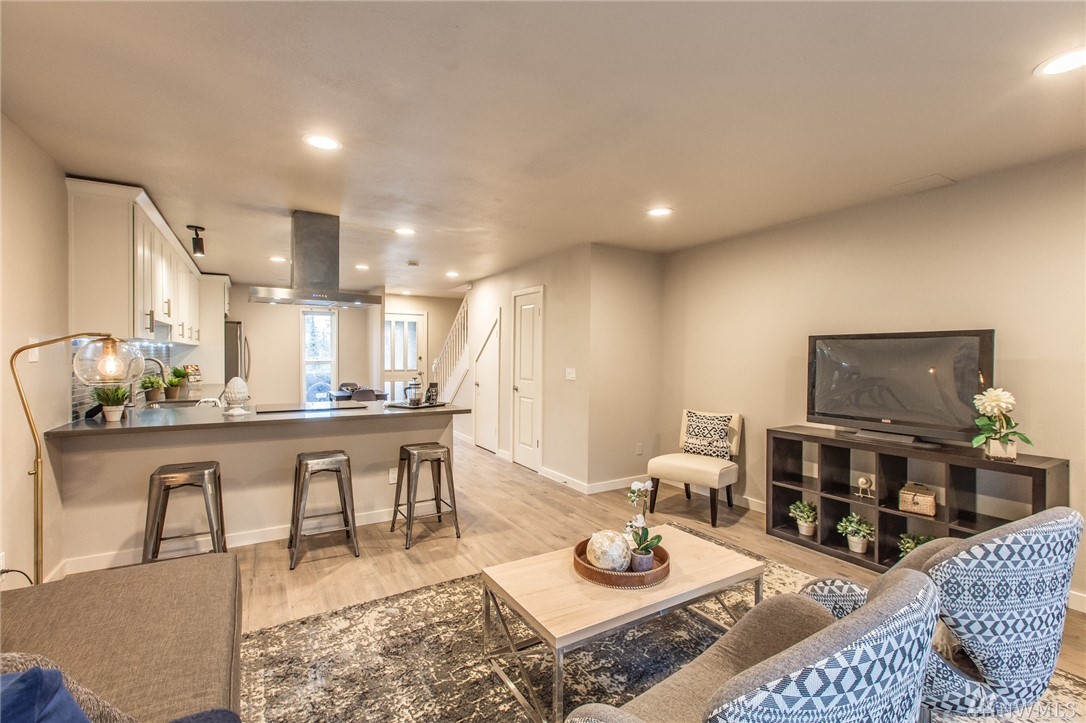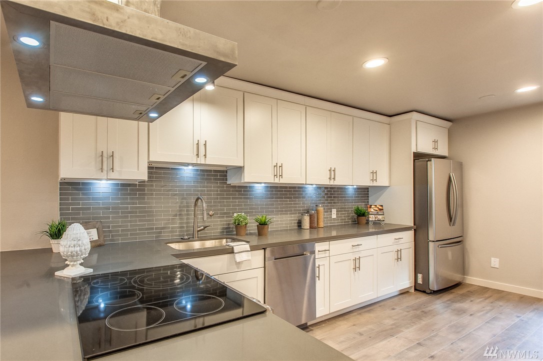 Beautifully updated & conveniently located 2 bed/2 bath townhome in North Seattle. Come & see the all new finishes throughout this highly functional & open floor-plan. Kitchen is adorned w/new upgraded ss appliances, stylish cabinets, quartz countertops. New hardwoods throughout main floor. All flooring, lighting new & upgraded throughout. All bathrooms updated as well w/modern tile, new fixtures, etc. Large master bedroom w/en-suite and private balcony. Superb location close at all amenities!