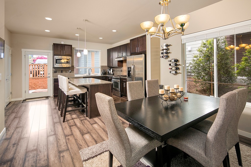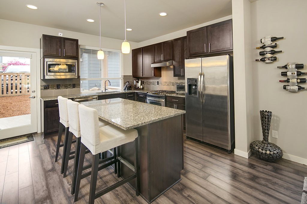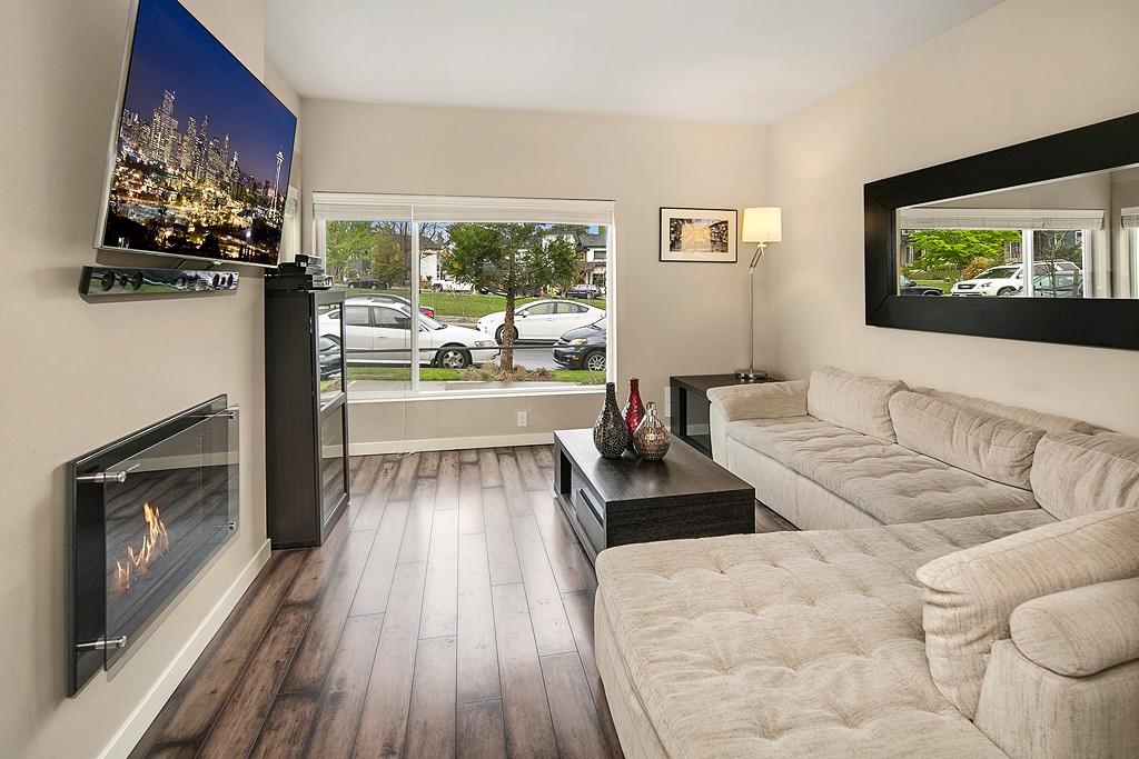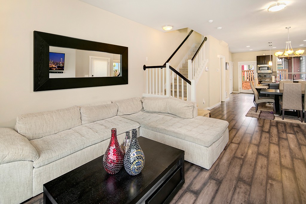 Striking, modern NW home w/ open layout & stylish finishes in flourishing Columbia City. Main floor has dark wide-plank hardwoods, living rm fireplace, sunny dining rm. Stunning kitchen has granite, SS apps, rich cabinets. Covered outdoor space for BBQ & relaxation. 3 beds up, all bright w/ deep closets; Master is a sanctuary, w/ huge windows, en-suite bath w/ granite, dual vanity, designer shower. 1-car garage + extra space & security system. Near light rail, dwntwn. Urban living at its finest!