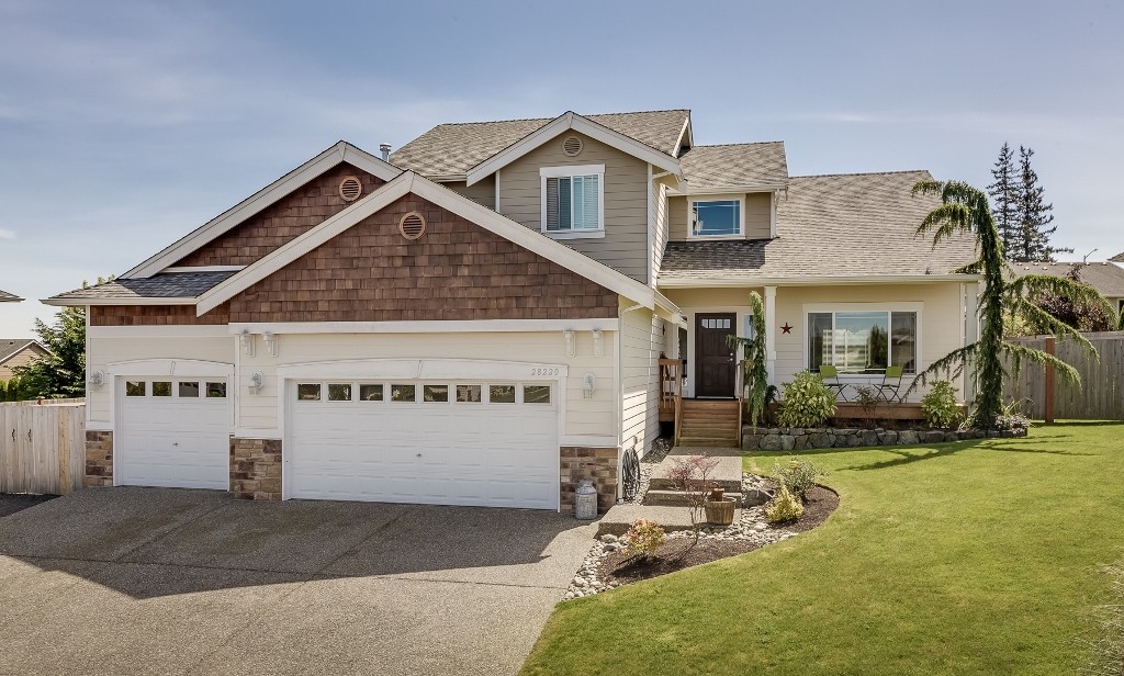 Beautiful Nordic Landing resale in Cedarhome Elementary school district. 4 bdrm craftsman w/ 2 1/2 baths, huge 3-car garage on approx. 1/4 acre lot. Views of Mt. Baker and the Cascade mts. Living rm, dining rm, open kitchen w/ eating space, utility rm and office/den all on main floor. 5-pc bath in Mstr bdrm w/ walk-in closet, 3 more bdrms and full bath upstairs. Beautiful partially fenced yard with ample room for boat or RV parking. Close to schools, shopping and I-5 access. Location, Location.