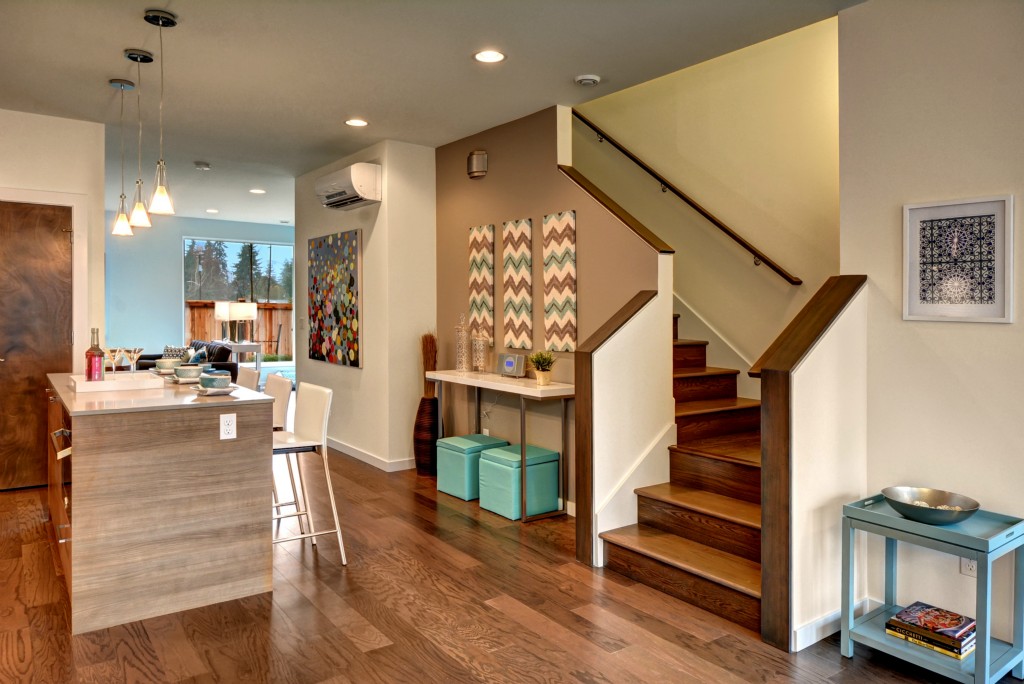 Move-in ready! Stunning Modern with great-room and hardwood floors on main level. Gourmet Kitchen has European-style custom cabinets by Abodian & energy efficient stainless appliances. Upper level Master Suite with luxurious spa inspired bathroom, a deep soaker tub & tiled shower. City 26 comes complete with blown in Greenguard insulation, HRV System, slab quartz countertops, exclusive Fiber optics system, USB ports in Kitchen & Master Bedroom, and individually designed landscaping.
