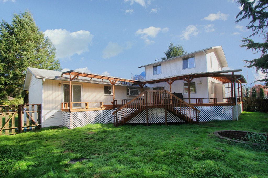 Beautifully updated home w/fresh paint & carpet through out. Convenient neighborhood in North Bend. Boasting 3 bedrms & office. 1.75 baths & bonus rm. Kitchen has tile & plenty of rm to for storage. Both baths have updated tile, fixtures & master bth is a 5-piece suite w/jetted tub. New vinyl windows allow viewing Mt. Si a pleasure. Free standing wood stove keeps you warm and cozy on those cool evenings. Walk-in closets make this home spacious & well organized. Huge 900 sf deck. Lrg fenced yard.