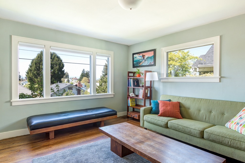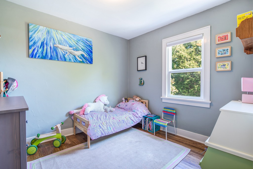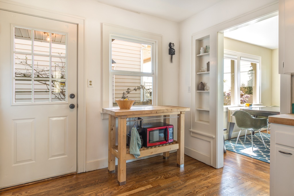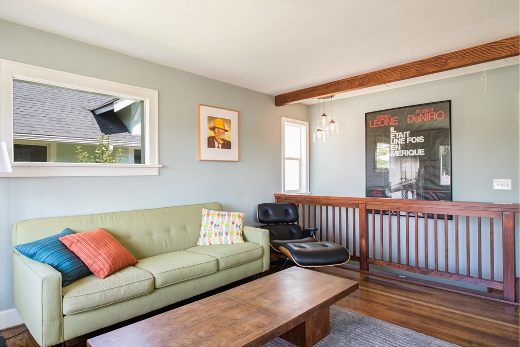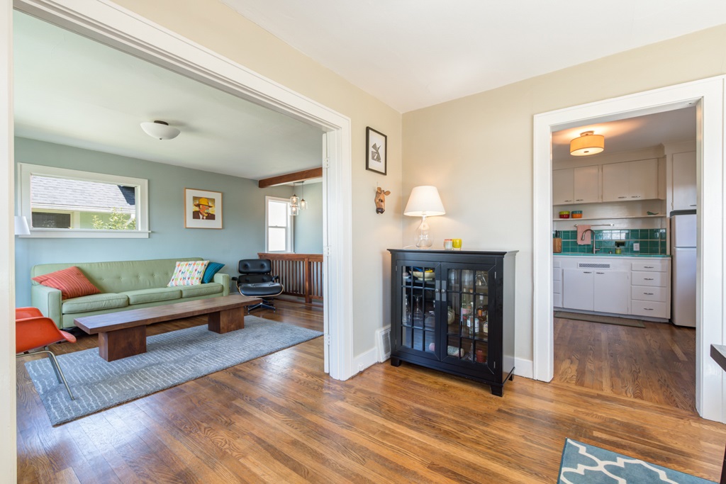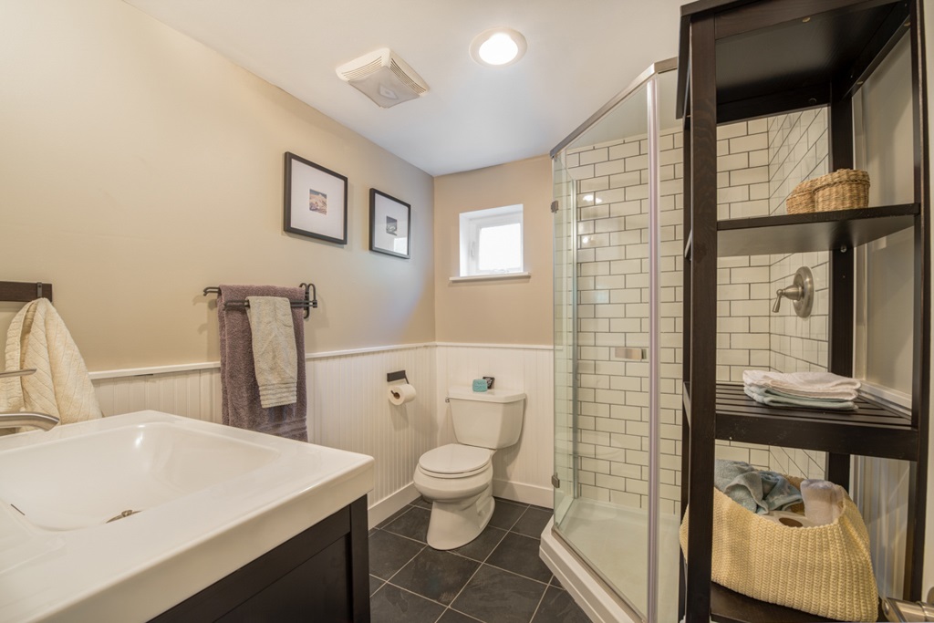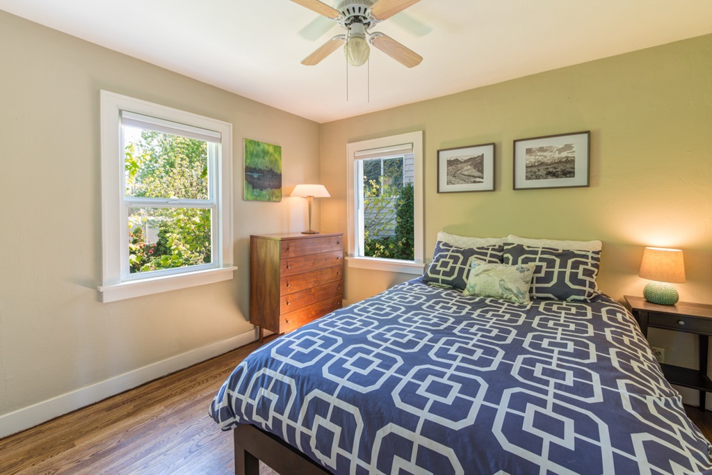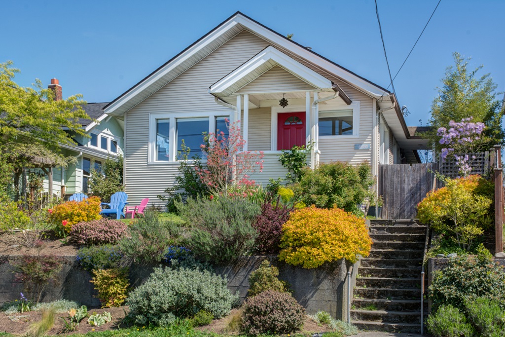 Charming Ballard Bungalow perched high above the street for privacy & mountain views. Inviting main floor boasts abundance of natural light. Full bath includes in-floor radiant heat & modern fixtures yet blends seamlessly w/wonderful period details incl french doors & hardwoods. Lower level features new bath, rec room, large bedroom/den & slate floors throughout. Delightful patio & attractive landscaping in fully fenced backyard. Great shop/storage space & garage door w/alley access.