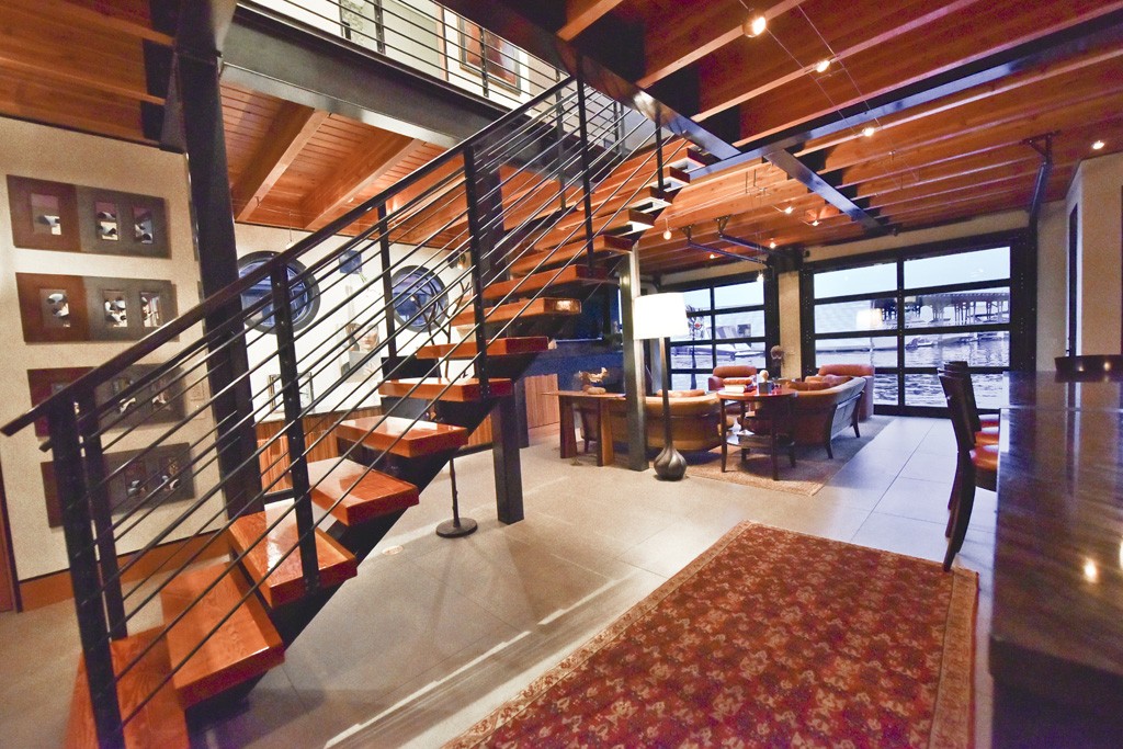 You are in luck, Fairview Landing has an opening! Quintessential Seattle lifestyle meets urban chic Soho loft-complete with an industrial aesthetic floating in its own reflection on Lake Union. Soaring ceilings with open beams, mill grade steel staircase and garage doors that turn the living room out onto the water are just a few surprises behind the front door. The open great room blends fine cooking with fine dining and lively conversation around the cozy fire place in a perfect way.