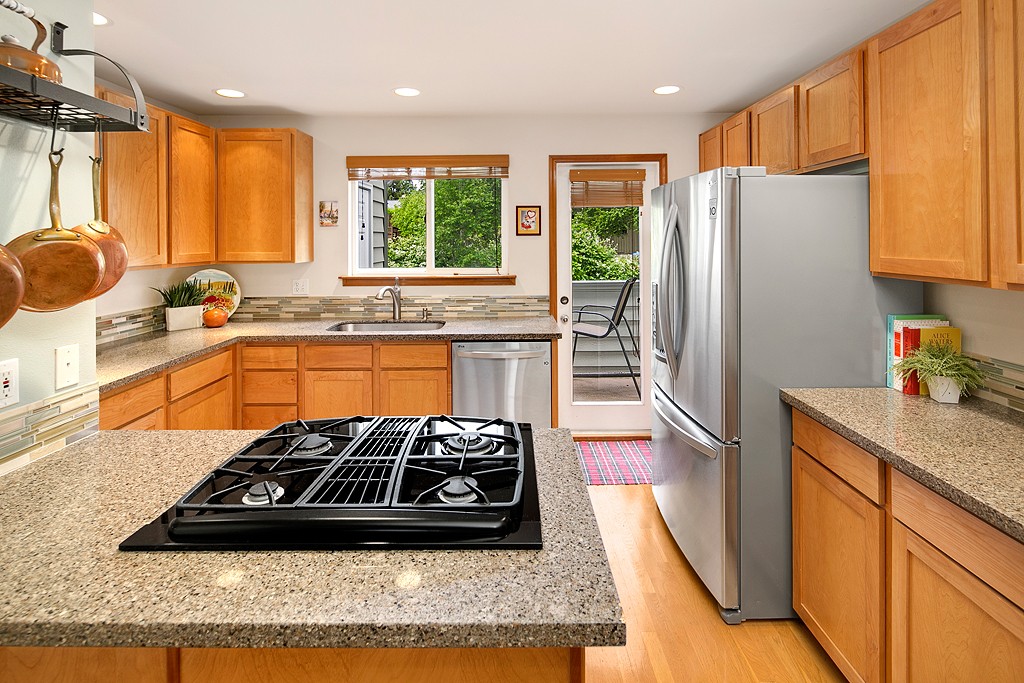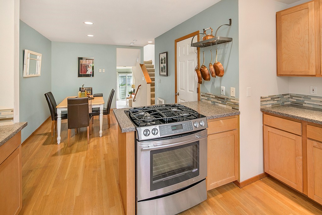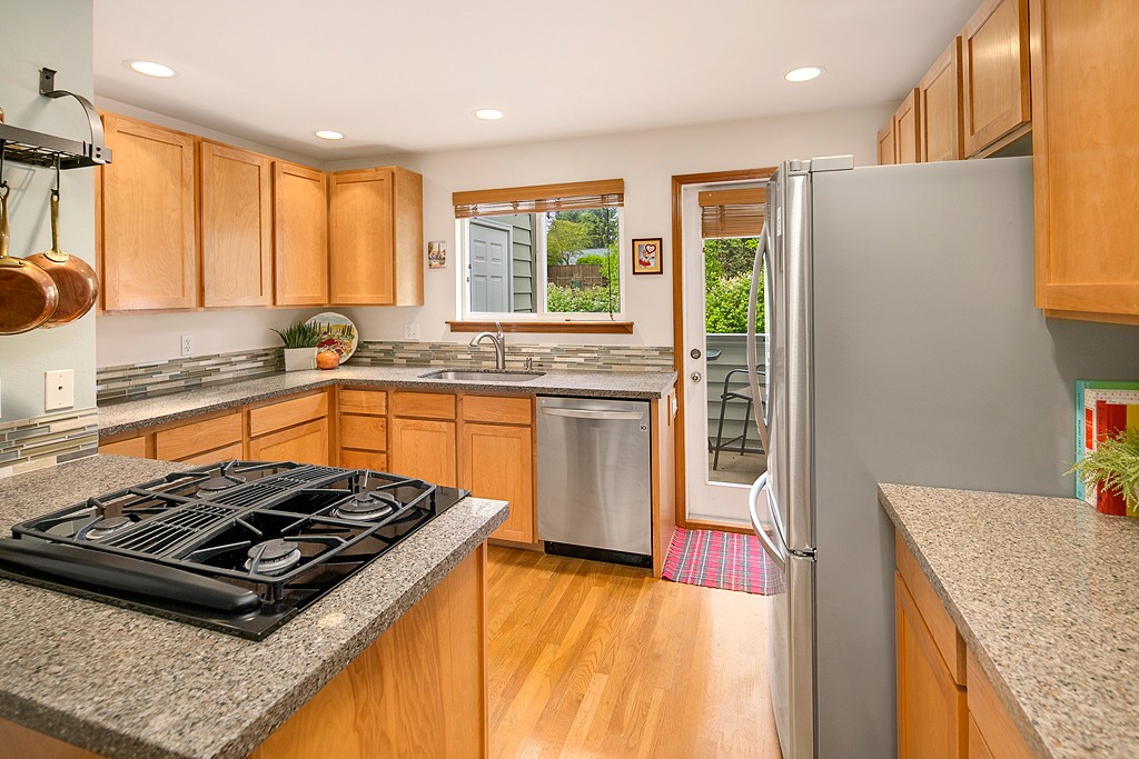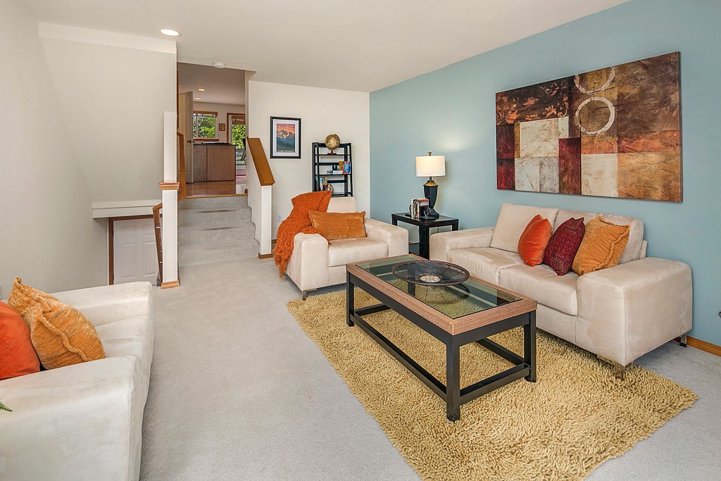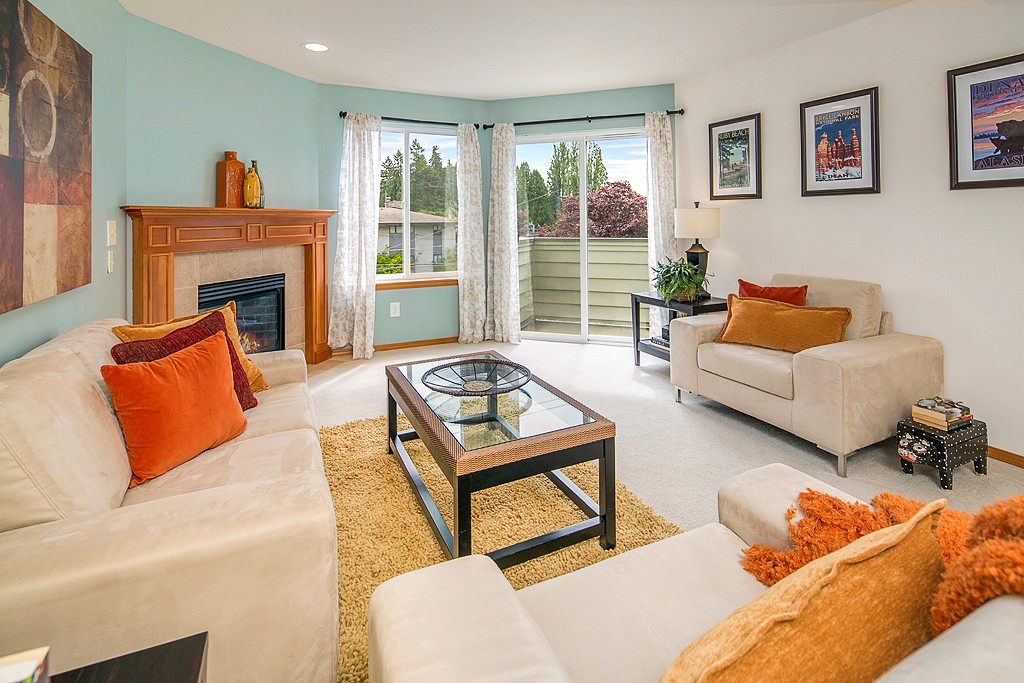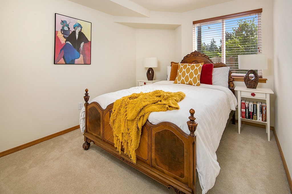 Exceptionally large, airy home, w/a flexible multi-level floor plan & lake view. Remodeled kitchen w/new quartz counters, SS appliances & gas range. Living room boasts a gas FP. Two decks. Two large bedrooms upstairs include the master w/a 5-piece bath and a new quartz counter. Skylights & cathedral ceilings. First floor bedroom has it's own 3/4 bath for guests/roommate. Great storage/closet space. Efficient radiant heat. Oversize garage and x-tra parking. Quiet, elevated complex. No HOA dues!
