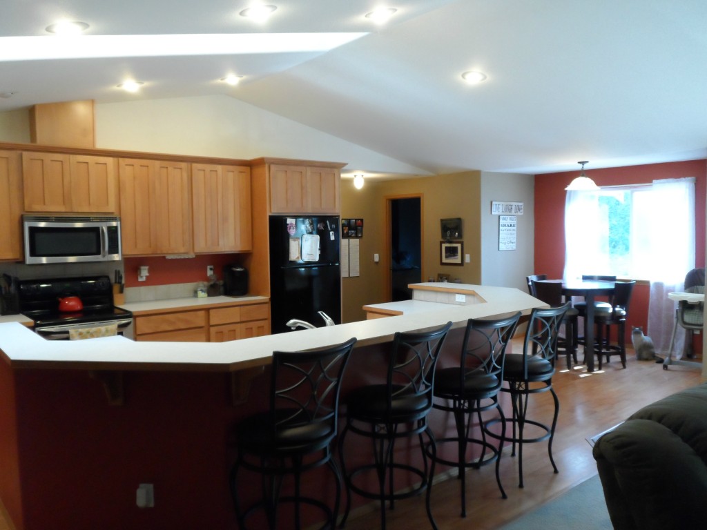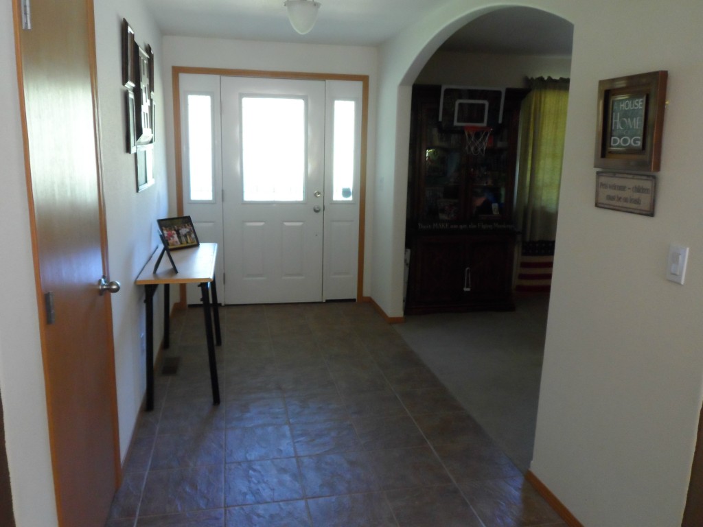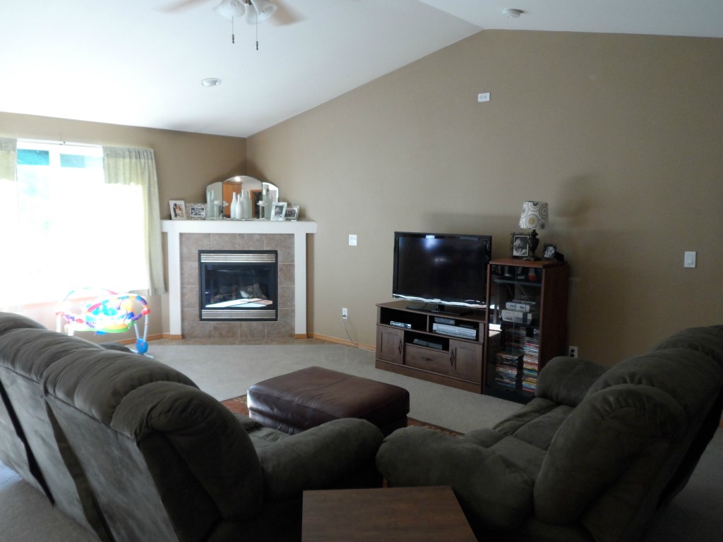 Large Rambler on 3 acres. Home has great open concept feel. Large kitchen with walk in Pantry, Large eating bar, Nook for small table. Kitchen is open to large living room with gas fireplace. Home has large formal dining room, large entry way with tile floors. Attached two car garage. Large laundry room with its own sink. Master suite has extra large walk in closet, bathroom with Garden tub, dual sink vanity, large shower and toilet. Bedrooms are on opposite end of home with a bathroom.