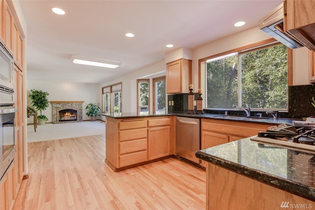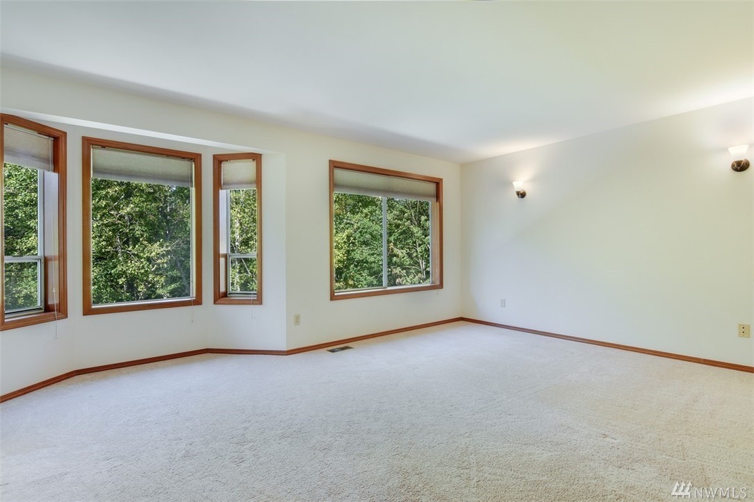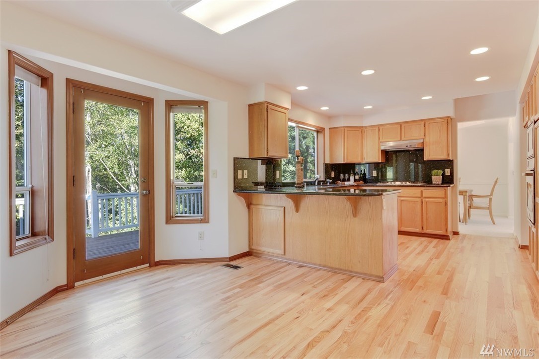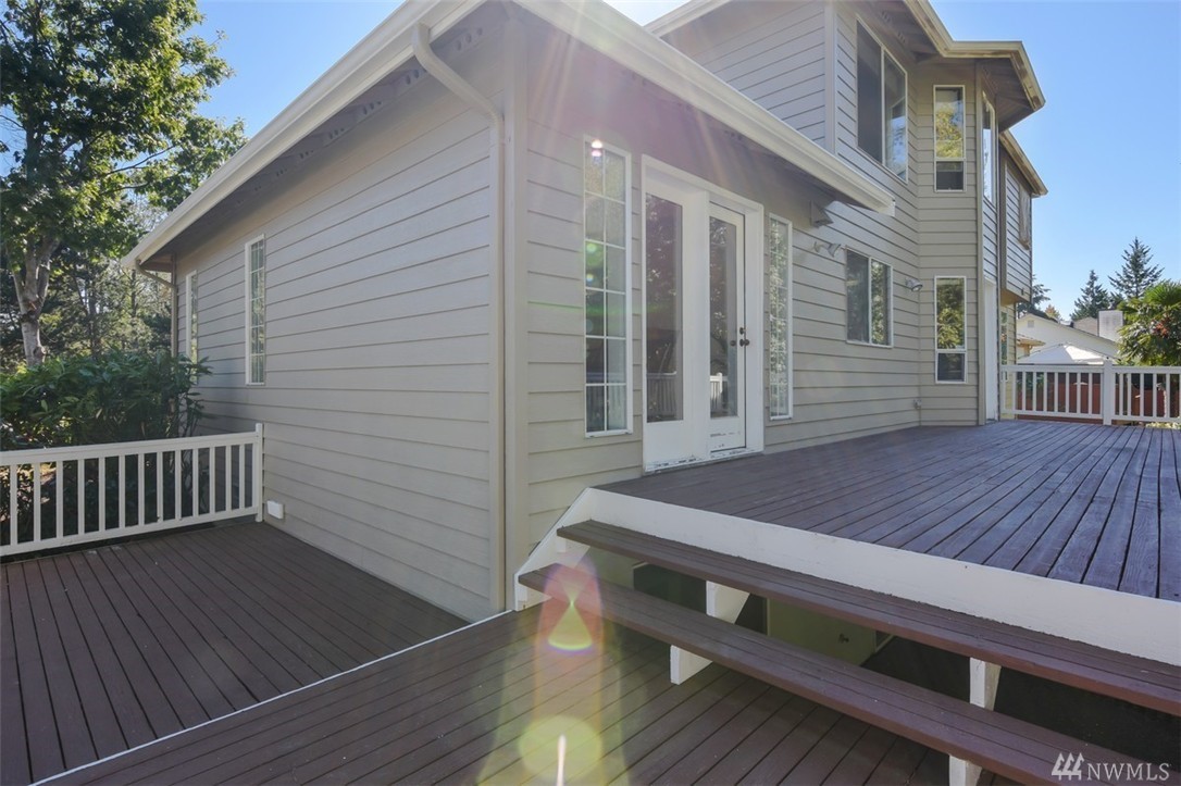 A fabulous two story entry ushers you into the liv rm w/wall of wndws and access to the formal dining room w/french doors to rear deck looking out to private green belt perfect for entertaining while enjoying gorgeous territorial views beyond. A gourmet kit w/slab granite cntrs, custom cabinets open to fam rm w/fpl. Three bedrooms on 2nd flr incl's master with en-suite 5-piece master bath. 2 addt'l bd's on lower level plus huge rec room w/private patio. Located at end of private cul de sac.