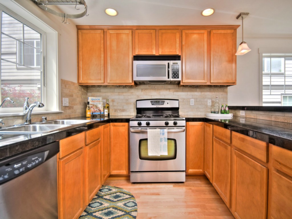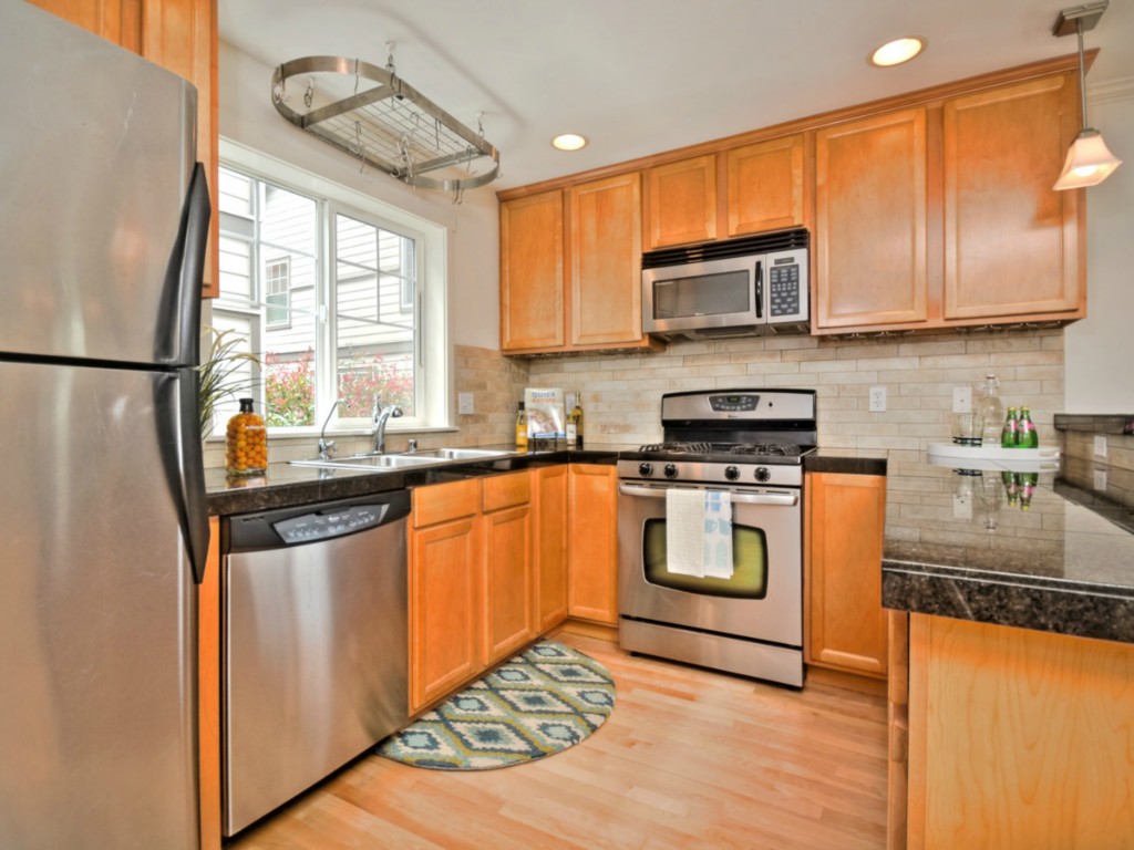 Stunning townhome w/3 bdrms & 3 full Baths. Amazing Capitol Hill location w/ 97 walk score. Formal slate entry & 3rd bedrm/office w/sliders to patio area. Stone courtyd w/room for summer BBQ's. High ceilings throughout deliver lots of light & spacious atmosphere. Kitchen w/SS & granite ctrs open to liv/din area, gorgeous newly refinished hdwd flrs, fresh int. paint & gas frplc flanked by bookshelves. 2 master suites on top flr w/laundry. NO HOA dues.