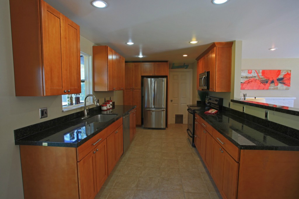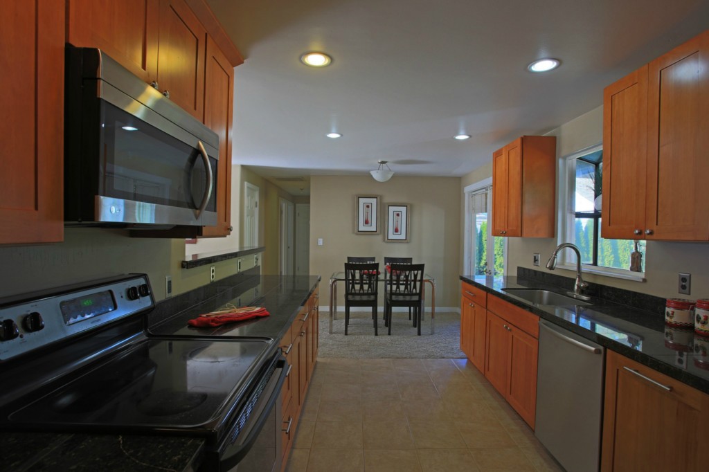 Remodeled and move-in ready! This cute 3-bedroom rambler with an open floor plan lives BIG. All new kitchen w/stainless steel appliances, tile floors, granite counters. Living room w/fireplace. Bathroom is completely updated, top to bottom. Great level lot. Back yard features a covered patio, built-in BBQ, fruit trees, garden beds. Large, well-equipped shop. New exterior siding. Award-winning Shoreline Schools. Great location on a quiet street w/easy access to I-5, bus, shopping, restaurants.
