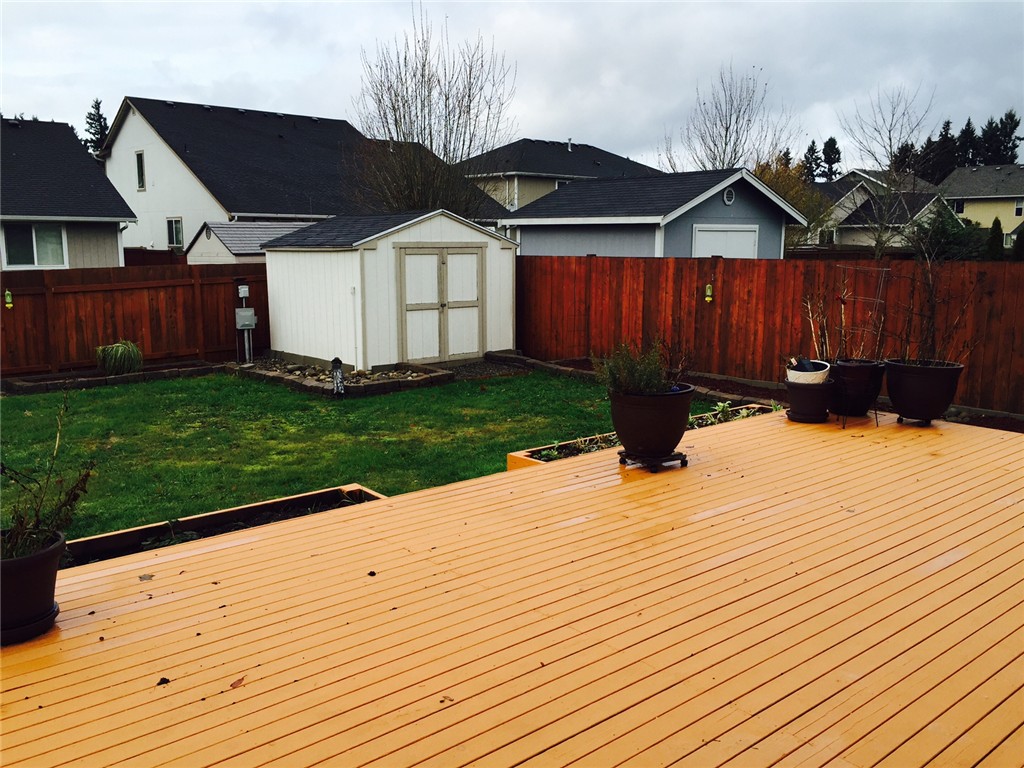 Previous model home with fantastic upgrades throughout. Brand new floors, remodeled kitchen, half bath and fresh paint throughout. MOVE IN READY. Large fully fenced corner lot complete with storage shed, RV parking and entertainment deck.