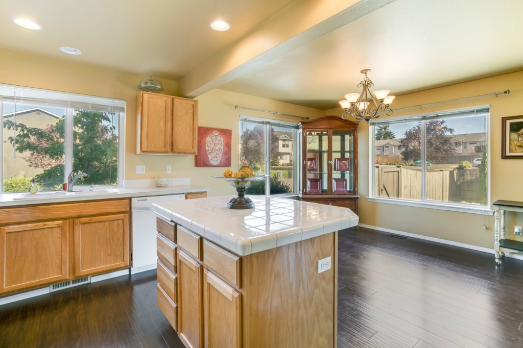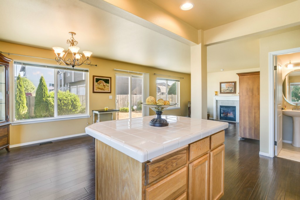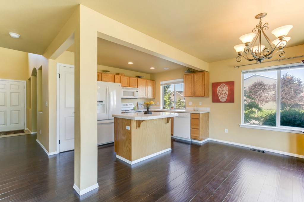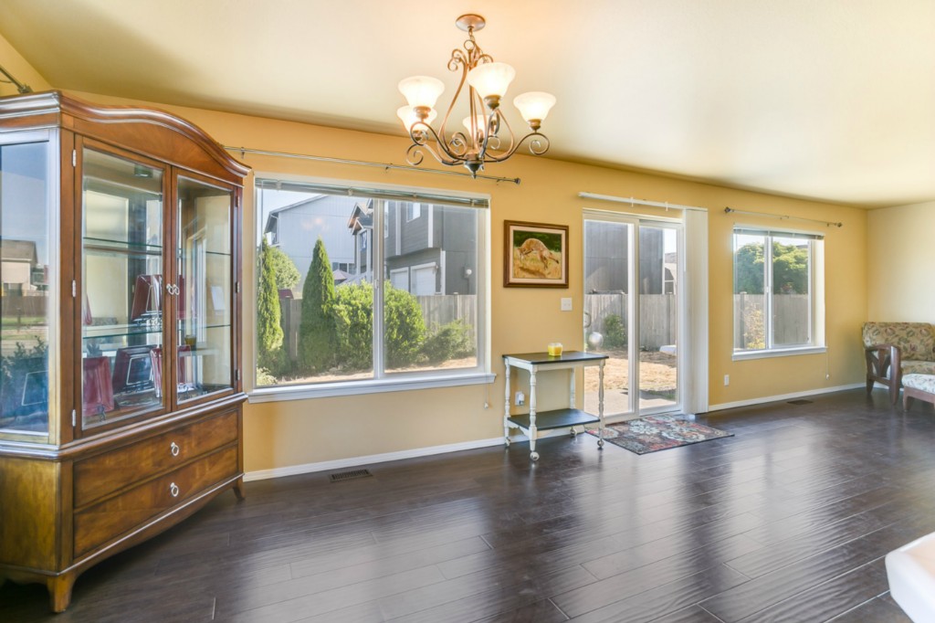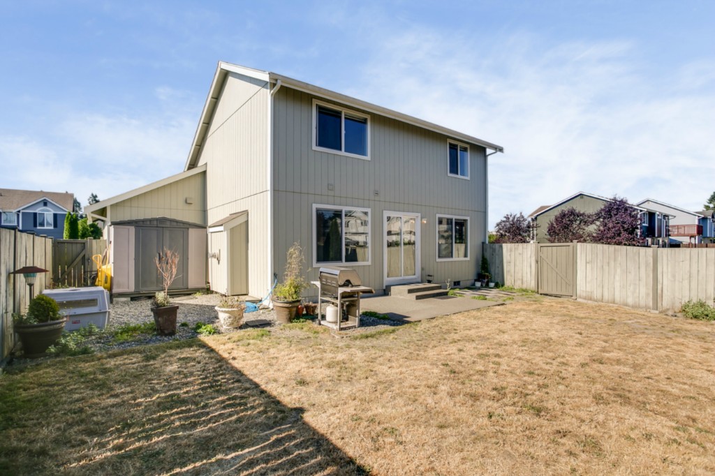 Absolutely immaculate 2 story home in Spanaway. 3 spacious bedrooms & 2.5 bath. Corner lot w/ beautifully landscaped front yard. Entry flows into a very nice living room w/arched opening. Gorgeous, 2 year old flooring throughout brings you to an open kitchen/dining/family room. Bright kitchen features large pantry & island w/ tile counter top. Dishwasher is brand new & refrigerator is only 1 year old. Family room has a cozy gas fireplace. Back patio opens to a large fully fenced yard w/shed.