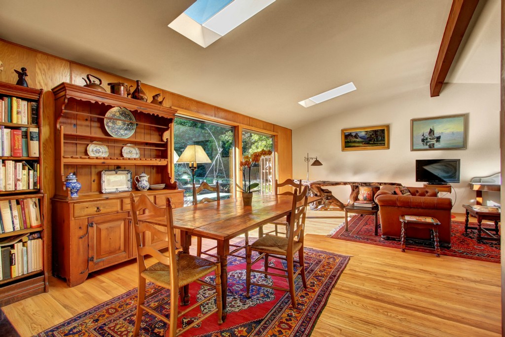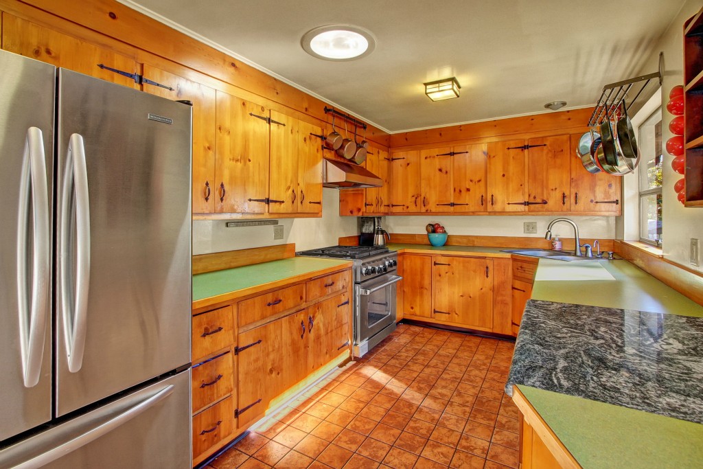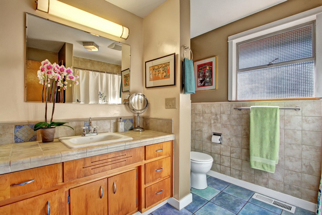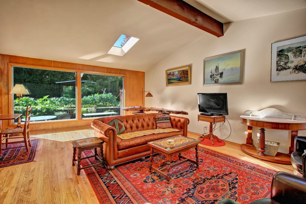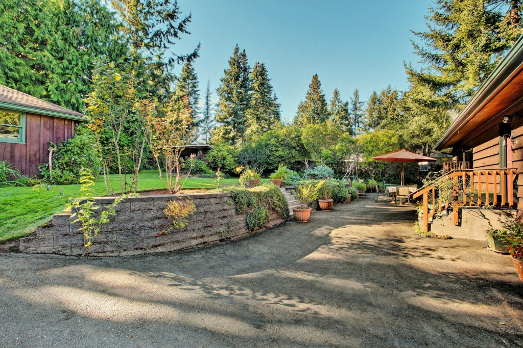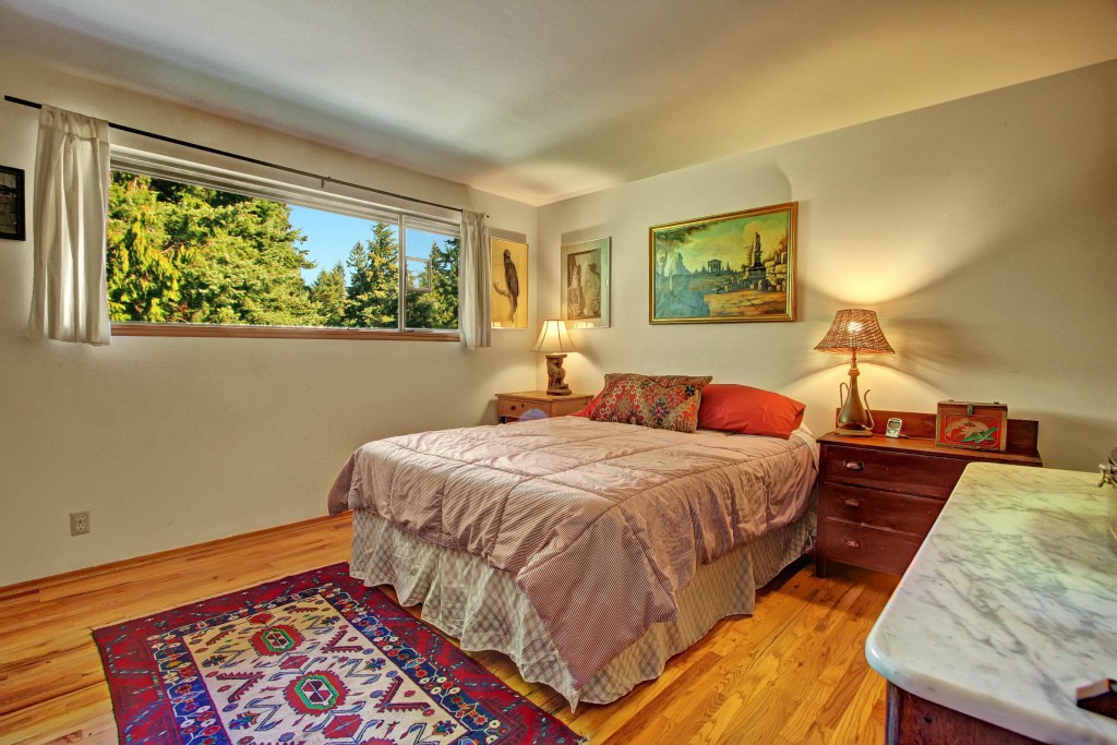 This solid 1950's house was updated in 2009 w/metal roof, skylights, landscaping & sprinkler system. Living room has floor to ceiling windows to bring the outdoors in. The large lot offers privacy & outdoor fire shed to enjoy those Seattle evenings. The light bright lower level has recently been updated w/new drywall, paint & carpet. Move in ready! The orig 1 bd/1 ba house has new roof as of Nov2014. It has been converted to garage/storage, but with work could qualify as guest house, not rental.