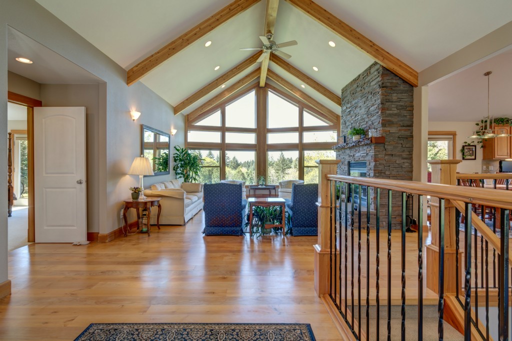 6.1 acres of privacy, open vistas, 2 pastures fully-fenced, gated at main road w/ meandering drive through woods and up to home on hill. barn with workshop and room for more vehicles (plus attached 2-car gar.). Home is in new condition w/ master suite on the main, lots of deck, Maple floors,granite, exterior siding harvested from the property. Cathedral ceilings and windows combined with the quiet beauty of the land create a sublime retreat. Livestock-ready. Rural yet close to all amenities