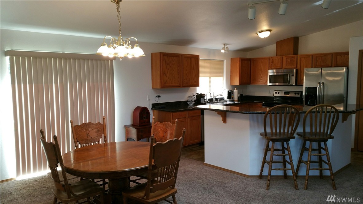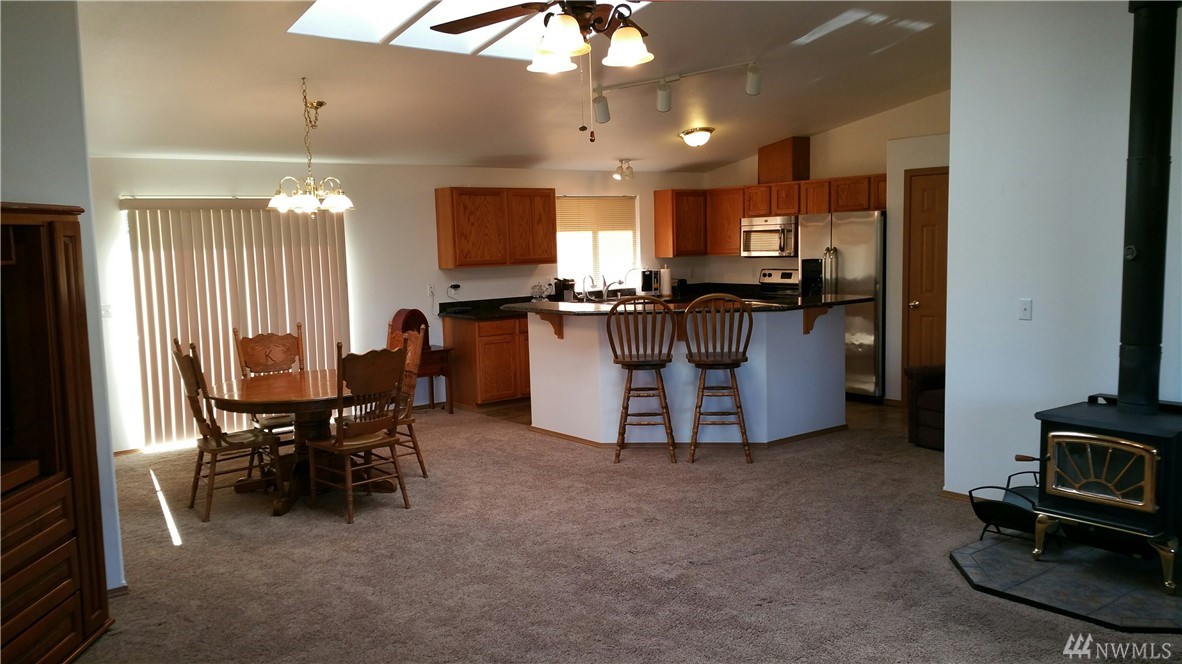 Check out this single story, 3 BR home on 5 plus acres with 2-car attached garage and a 3-bay detached garage/shop. Conveniently located, this home features an open floor plan, stainless appliances, granite counters in kitchen and baths. Vaulted ceilings, a woodstove and much more. Master BR has a huge walk-in closet and an easy access 5 ft shower. 3 Bay shop has hydraulic hoist, ready for your projects. Lot is part flat, hillside and lower pasture. Come take a look!