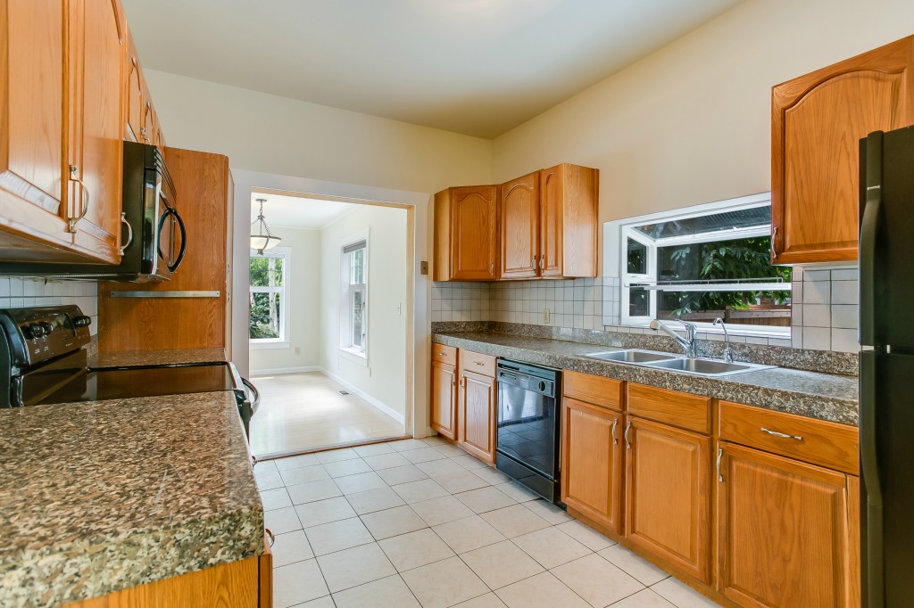 Delightful residence in Seward Park presents light-filled interior, gleaming floors, updated kitchen and baths and plenty of style. Main floor: Easy flow living areas; well-designed kitchen with ample cbntry, tile floors, granite countertops; two large bdrms; full bath. Upper level: Master suite features elevated bed, view windows, deluxe bath with jetted tub; roomy guest bdrm. Expansive country-style front porch, fenced yard, mature landscaping. Minutes to trails, parks, PCC, and amenities.