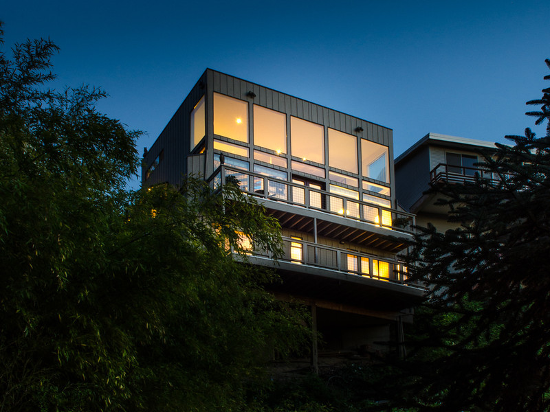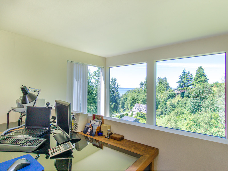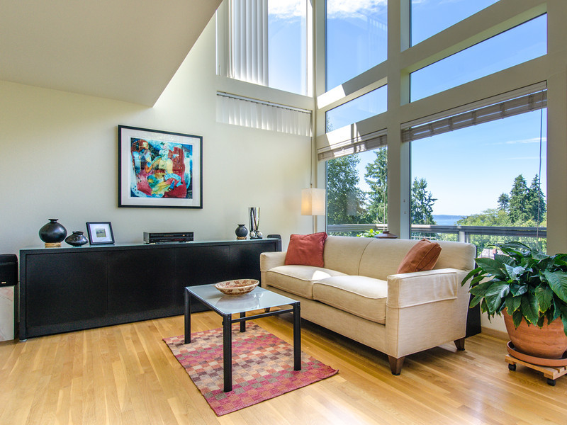 Architecturally Significant North Beach Contemporary w/North West Exposure offers astonishing High-Impact Views to a story book like outlook to Puget Sound. Great Room Inspiration w/17' wall of windows, French doors fuse Indoor/Outdoor Spaces & bathe in warm natural light. Expansive Master Suite w/View Deck share same level w/2 Additional bedrooms.Virtually Maintenance free lot w/2-car garage. Ensconced on a Private Lane, truly a Rare Opportunity to own this Exquisite & Distinctive Sanctuary.