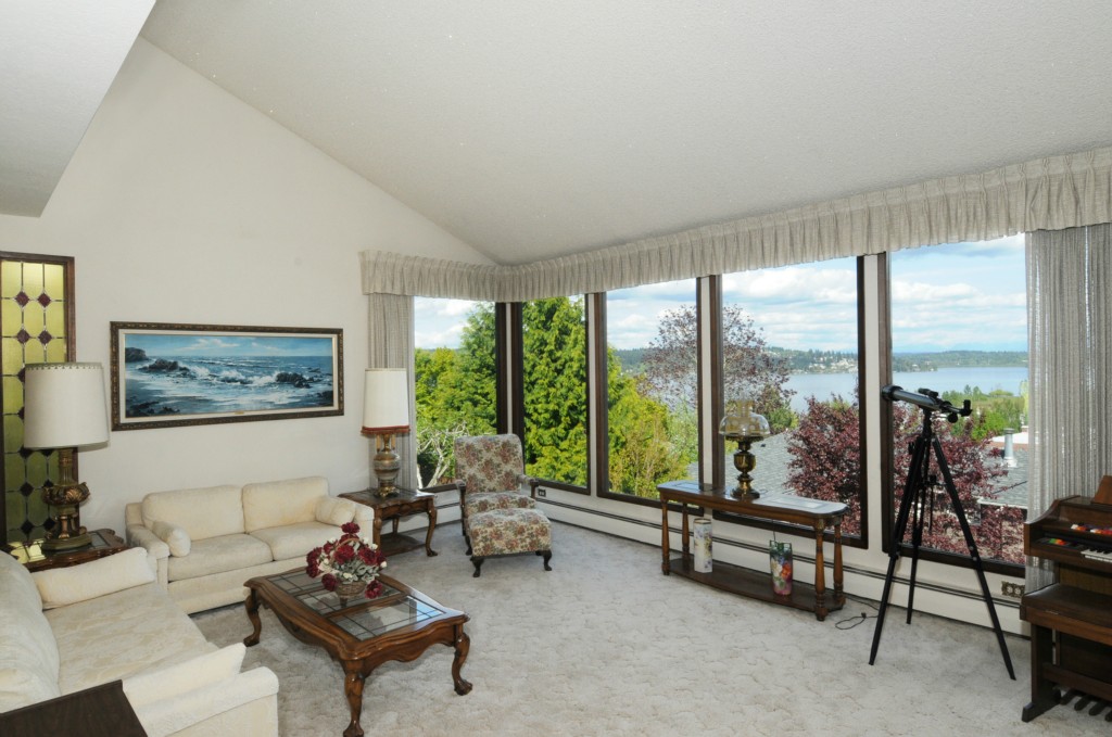 This custom built view home has had only 1 owner in its lifetime. If you're looking for a large 4 bdrm home with rm for everyone; w/ jaw dropping lake & Mt views; in a highly desirable walking neighborhood; and strong as a castle, you can stop looking! There's big formal living & family rooms w/ great flow, an open kitchen with breakfast bar adj to an open family room, and a huge rec rm with a fun bar for movie night. The big frplcs handle 5 ft logs! Big 2 car garage, plus new roof & gas boiler.
