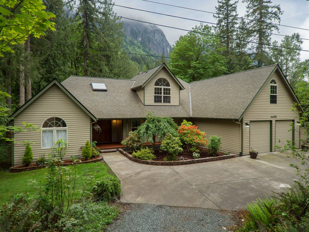 Custom built riverfront estate sits at the base of Mt. Si in the beautiful Snoqualmie Valley. This is the perfect retreat with 152 ft of river front on 2 tax lots, w/ almost an acre of land, amazing waterfall and mtn views. Home boasts Trex decking, two bonus rooms, clear-cedar ceilings, hardwood floors, genuine river rock fireplace has fan & secondary ducting to heat entire house. Newer roof, slab granite counters, s s appliances, new gas furnace, double-sided gas fp and newer water heater.