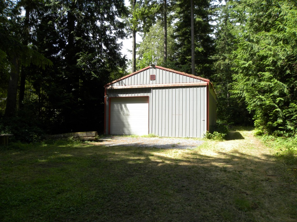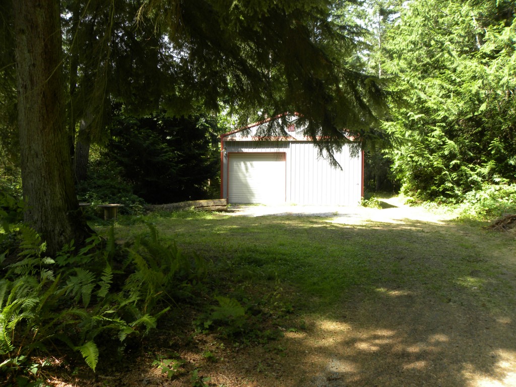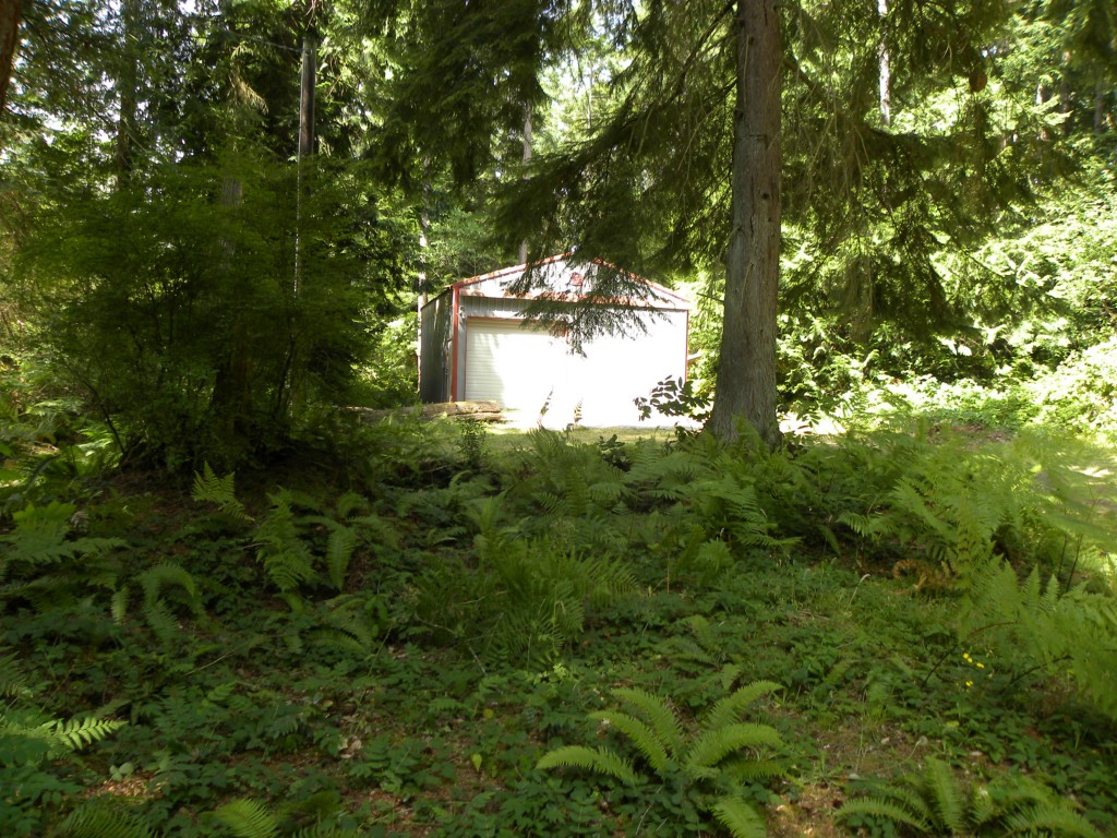 Great level building lot, with Shop on the property. Shared Well Installed. Electricity On the Property. Private setting with Towering Evergreens. Partially Cleared, and Driveway access to back of the property.