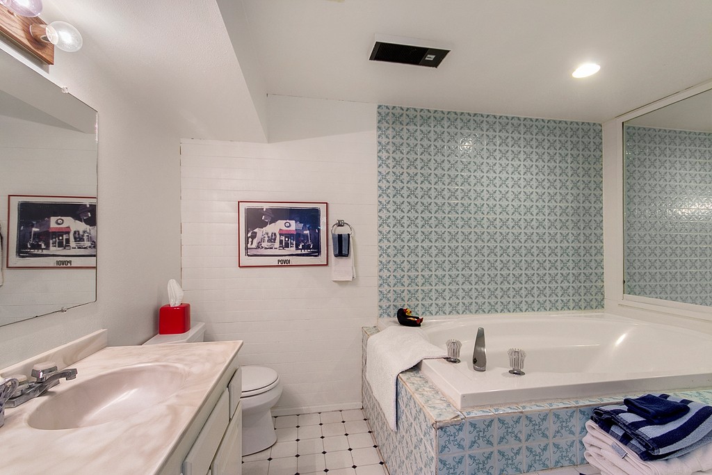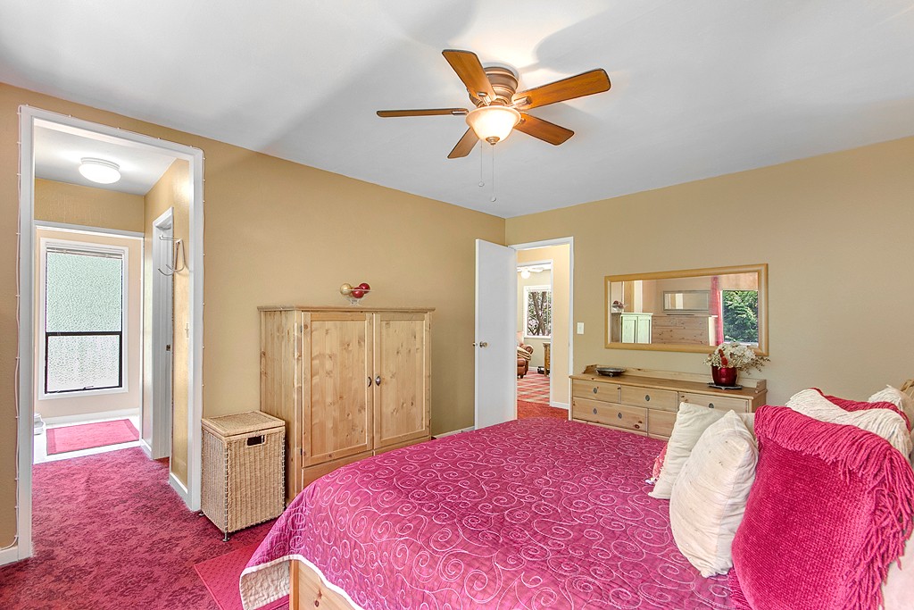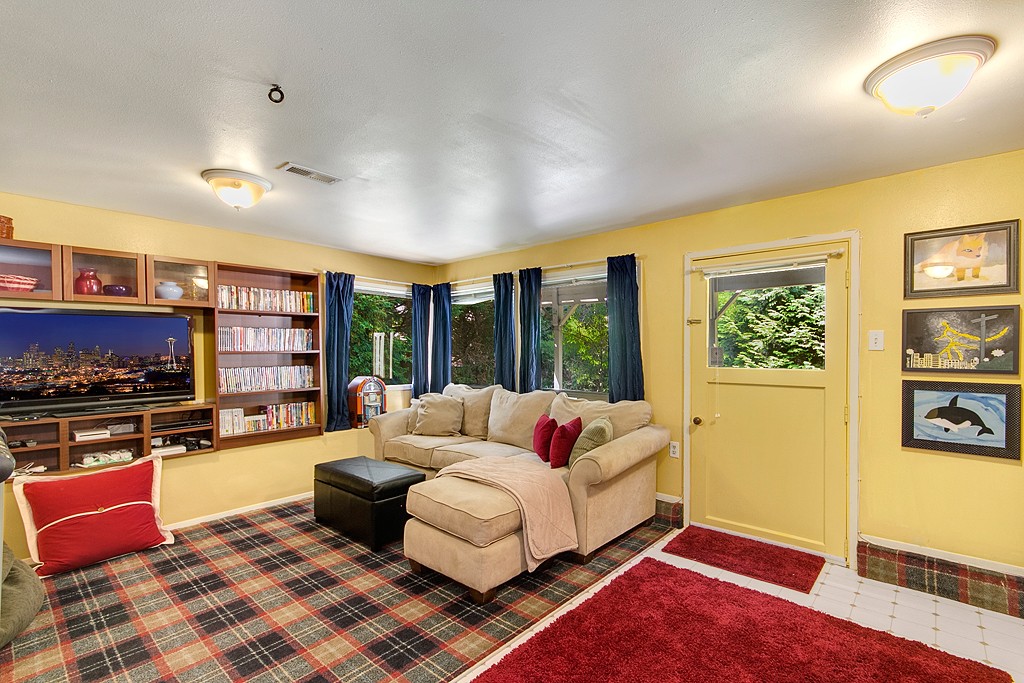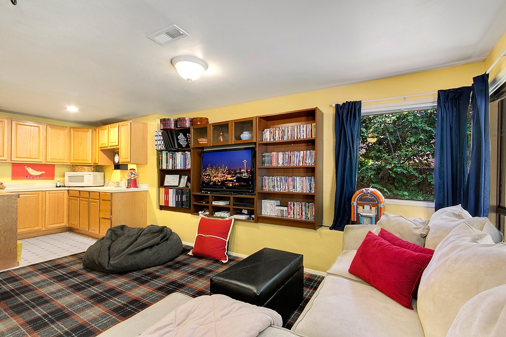 Updated kitchen with large eating area. Dining room connects to open living room with vaulted ceiling and large windows. Central AC keeps you cool. Rec room with mini kitchen & its own entrance offers lots of options. 2 beds and full bath complete the area.