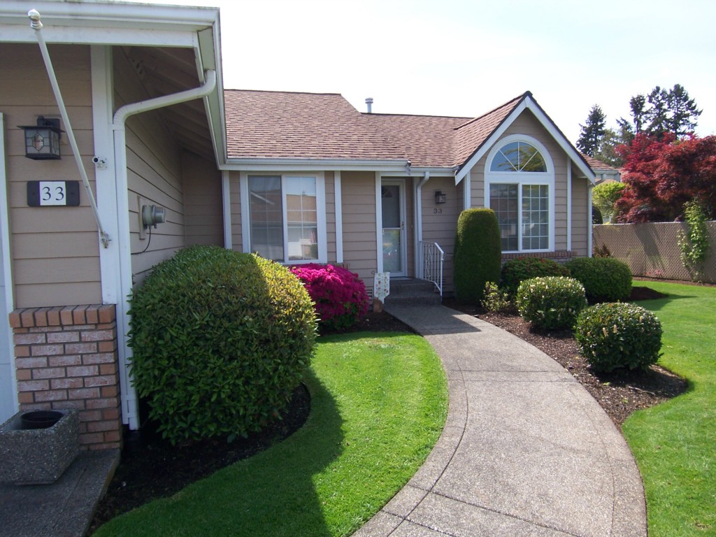 Quiet, serene one-level living! You will love this well-maintained Town Home in the beautiful gated community of "Lakewood Oaks". So private, yet close to shopping and freeways. 3 bedrooms & 2 baths (3rd bedroom could easily be an office). Flowing circle floor plan with a light and bright feel! Vaulted ceilings, cozy gas fireplace. Handsome kitchen with breakfast bar. HOA takes care of roof repair, landscaping, roads, gate & exterior of the home. Fully-fenced backyard & impeccable landscaping!