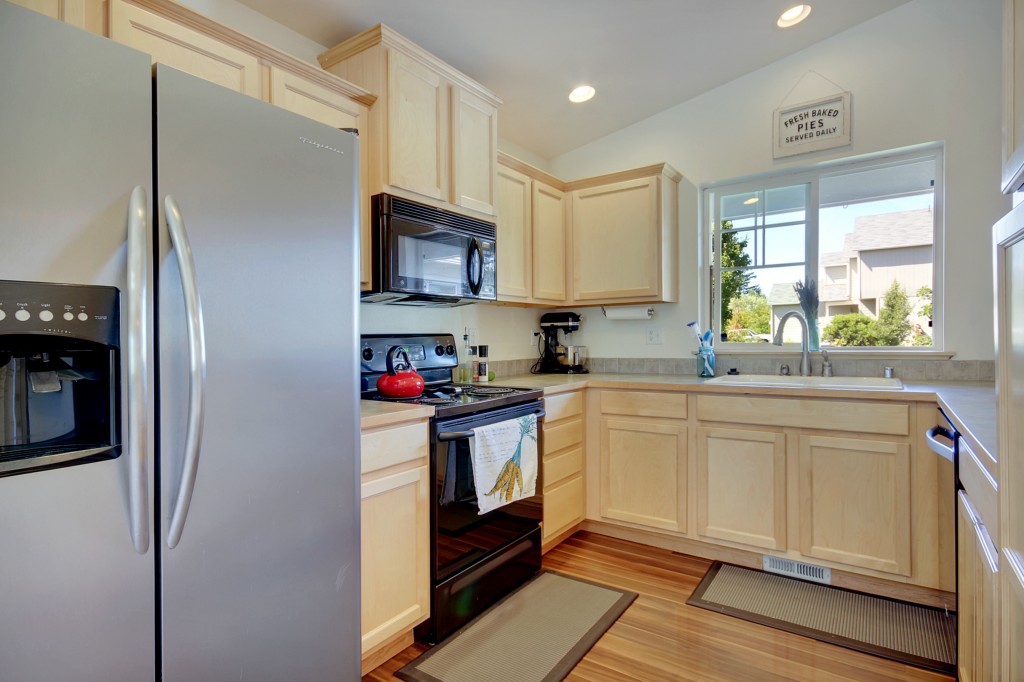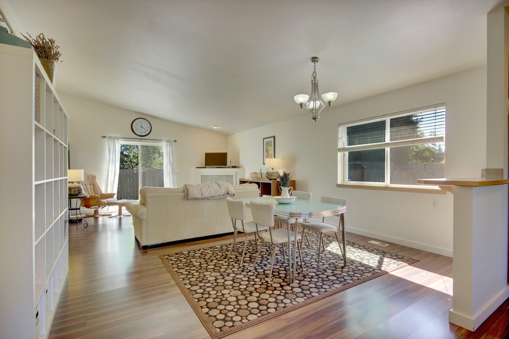 Immaculate & Charming 3 Bdrm Rambler Backs to Greenbelt for Ultimate Privacy. Light & Bright One-Story w/Great Room Concept. Extensive Rich Hardwoods, Vaulted Ceilings, Gas Fireplace, Updated Baths. Lovely Large Kitchen w/Maple Cabinetry, Stainless Fridge, Eating Bar & Dining Room. Master Suite w/Crown Molding & Updated Bath. Laundry Room w/Cabinets & Folding Counter. Rear Yard w/Huge Deck & No Neighbors Behind. One-Owner Home w/2-Car Garage. Close to Shops, Easy Commute to JBLM. Move-in Ready.