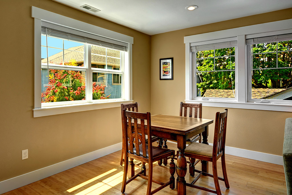 "Want to actually get to know your neighbors like we do? You're looking at the right place! High Point is a true community. It's very friendly, with its own public library branch, parks, playgrounds, & two P-Patches, all just 7 minutes from the Junction. Our Built Green house is a single-family standalone (rare in High Point), with A/C. Vaulted ceilings in the master suite offer great natural light. There's an office/guest bedroom on bottom. It's been a great home!" -Aimee & Zane