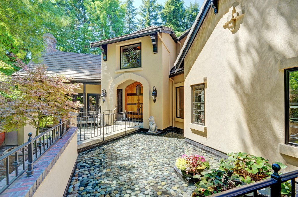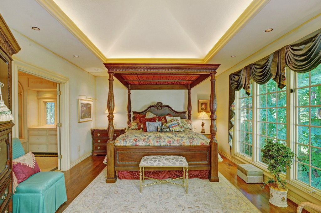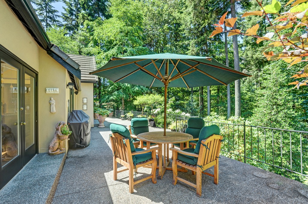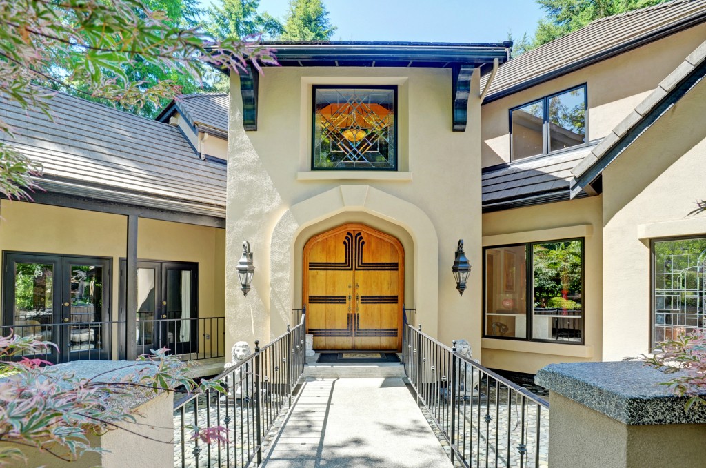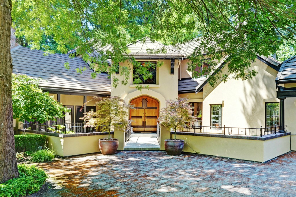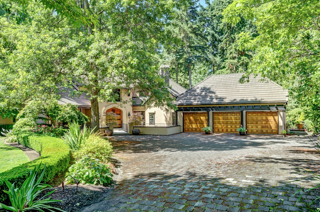 Rarely found French Chateau inspired masterpiece! Exquisite finishes with an entry that opens to a stunning circular staircase. Grand living and dining rooms fit for a crowd and the main floor master suite has a gorgeous marble bath. Light-filled Chef's kitchen has professional grade appls. Family room encased in Honduran mahogany with built-in media system and onyx bar. Multiple sets of French doors are perfect to enjoy the large deck and beautiful nature views. Charming old world wine cellar.