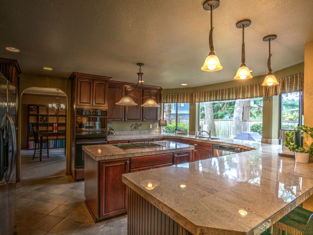 Buyers could not perform. Back on market. Don't delay. Remodeled ktchn with granite counters. You won't believe how much cabinet space there is. Overlooks spacious family room with gas frplc. Plenty of windows for natural light. Not only 4 bdrms but an additional main floor den. Formal living/dining rooms. Hrdwd flrs through most of main flr. Mstr suite is huge and has 5 piece bath and jetted tub. .24 acre lot with entertainment sized deck. 2 blocks from Chamber's Bay. University Place Schools