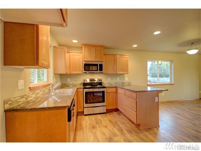 New Homes by Grandview North. 1,765 SF 3 bedroom 2 bath Rambler floor plan. Corner lot with 3 car garage. Features include slab granite, black/stainless appliances, rich wood trim, fireplace, covered front and rear porches. Lavishly landscaped yard areas and adjoining common greenbelt with walking areas and pergolas. Great neighborhood!