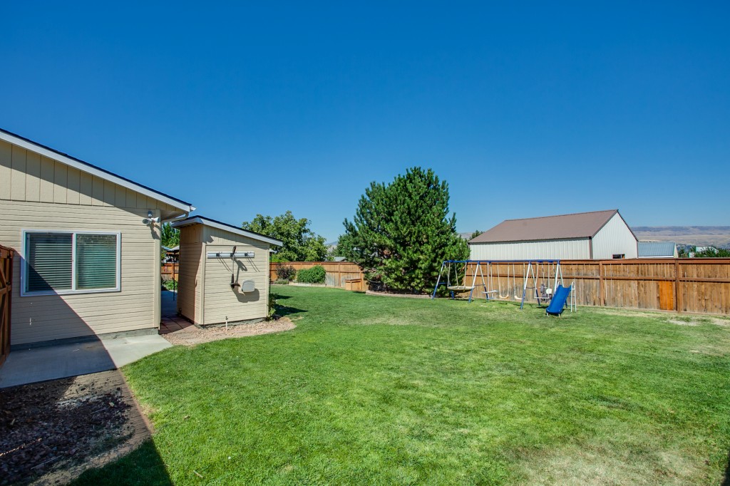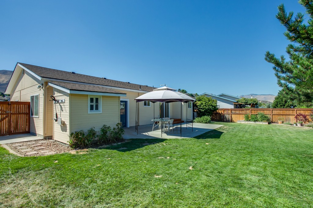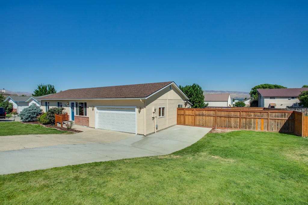 Sweet rambler in a great Wenatchee neighborhood located on a dead end street. Spacious lot w/room for RV parking. Newer laminate flooring & a dining area w/glass doors leading to the patio. Plenty of recessed lighting illuminates the dining & kitchen. Extra room off the kitchen is perfect to use as a den, office or family room. Master suite has a remodeled bathroom & expansive closet. Fenced backyard provides plenty of space w/easy to care for landscaping & level yard w/irrigation water.