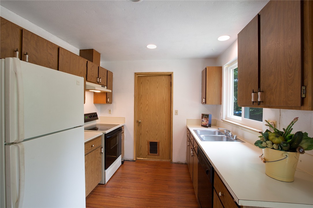 Charming cottage within walking distance to downtown shops and restaurants. Vaulted ceilings and designer wood accents sets this charmer apart from the others. Many upgrades have been made - new inside/outside paint and triple pane Penguin Windows, laminate flooring - but still room to make this home your own. Three spacious bedrooms, level yard, oversize 1 car garage. This home is perfect for the first time home buyer or those wanting to scale down.