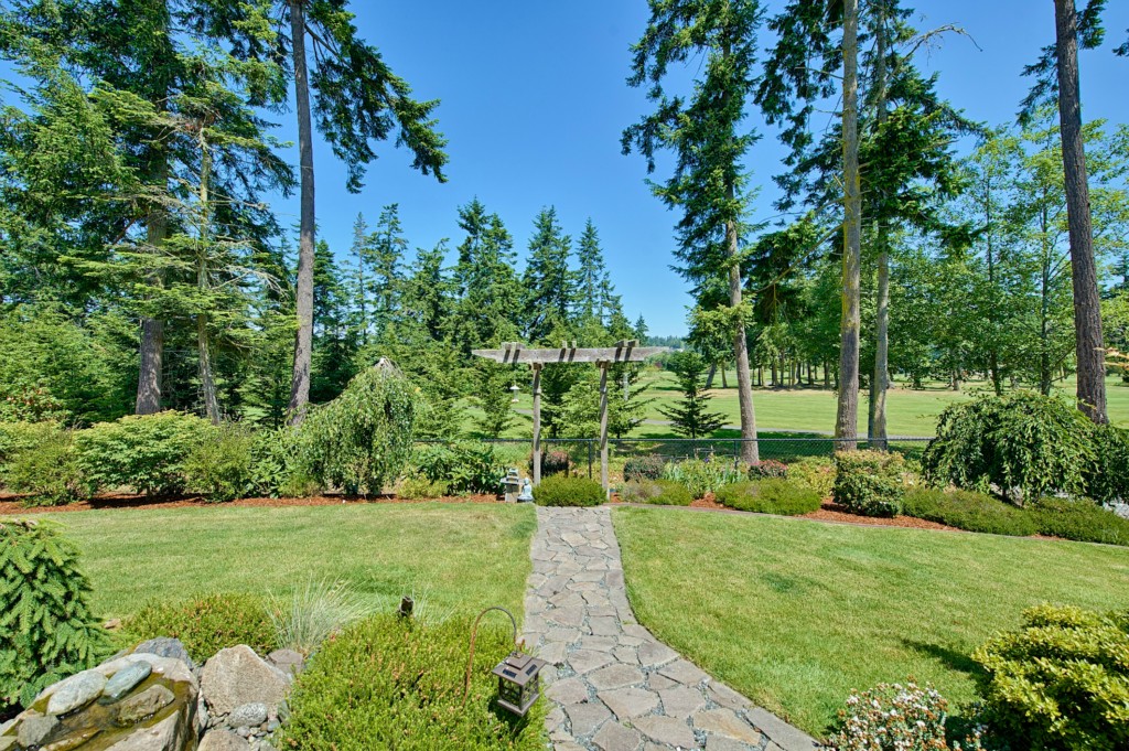 Premium golf course lot awaits you in desirable Fairway Point neighborhood. Comfortable single level Cap Sante style home w/ plush upgrades. You will be delighted w/ custom solid wood cabinetry in kitchen, living room & bathrooms, granite counter tops in kitchen & bathrooms, custom granite & detailed tiling in master bath & kitchen, stone fireplace, on demand water, custom closets & so much more. Enjoy sunny days gardening, surrounded by mature private landscaping. Close to town, schools & NAS.