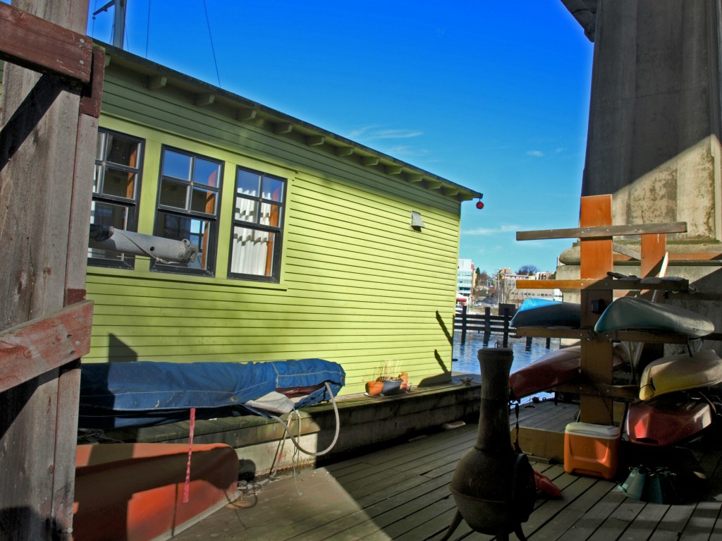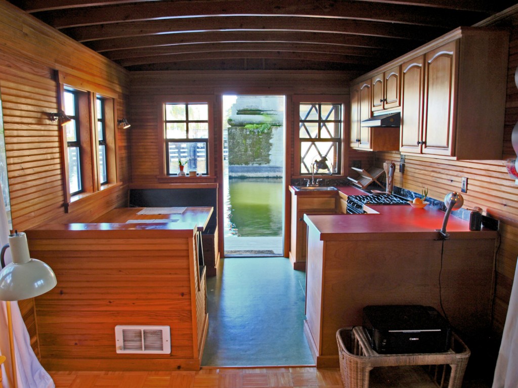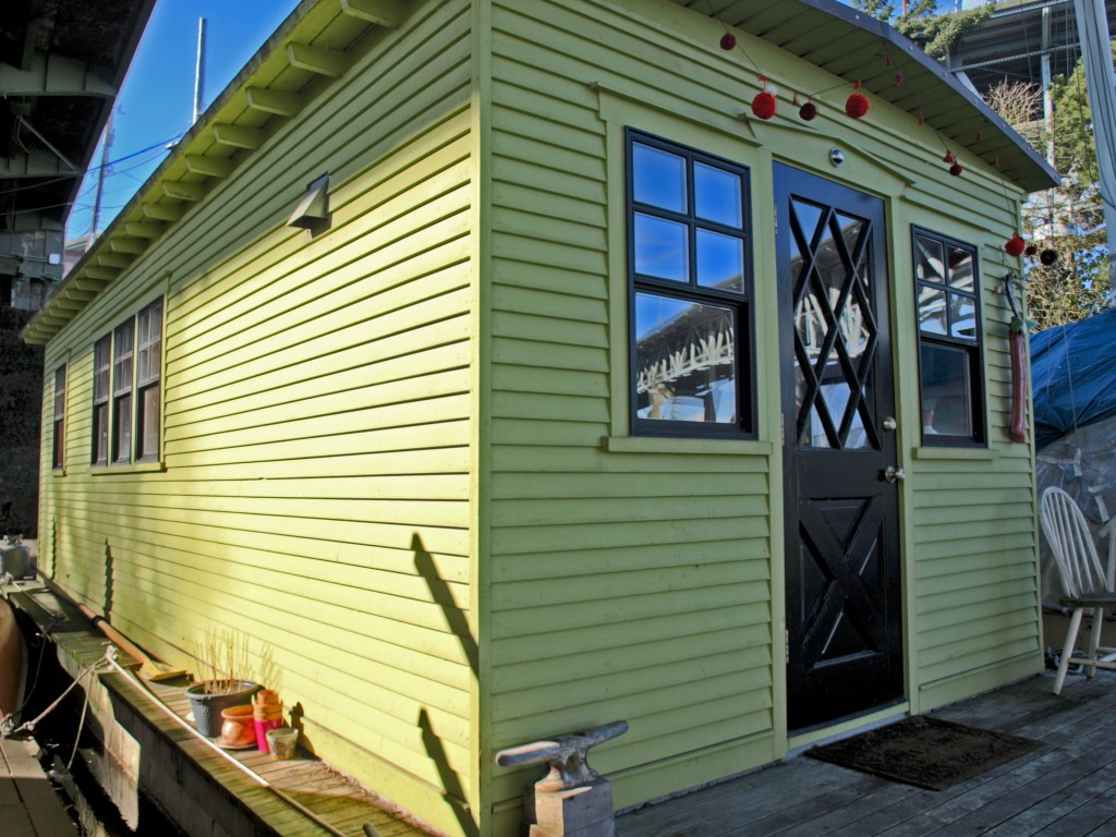 Welcome aboard "Skinny Minnie" Houseboat in tucked away secluded liveaboard, under University Bridge on private wide dock shared w/one houseboat neighbor. A charming Haggard Seattle Houseboat built w/concrete hull. Rare getaway, bring your toys, paddle board & kayaks. Queen size sleeping berth, small shower/bath, nice sized kitchen, half size fridge, built-in dining bench & stone propane fireplace, a signature feature of the builder. 33'X13", slip rental $500+electricity. Financing available.