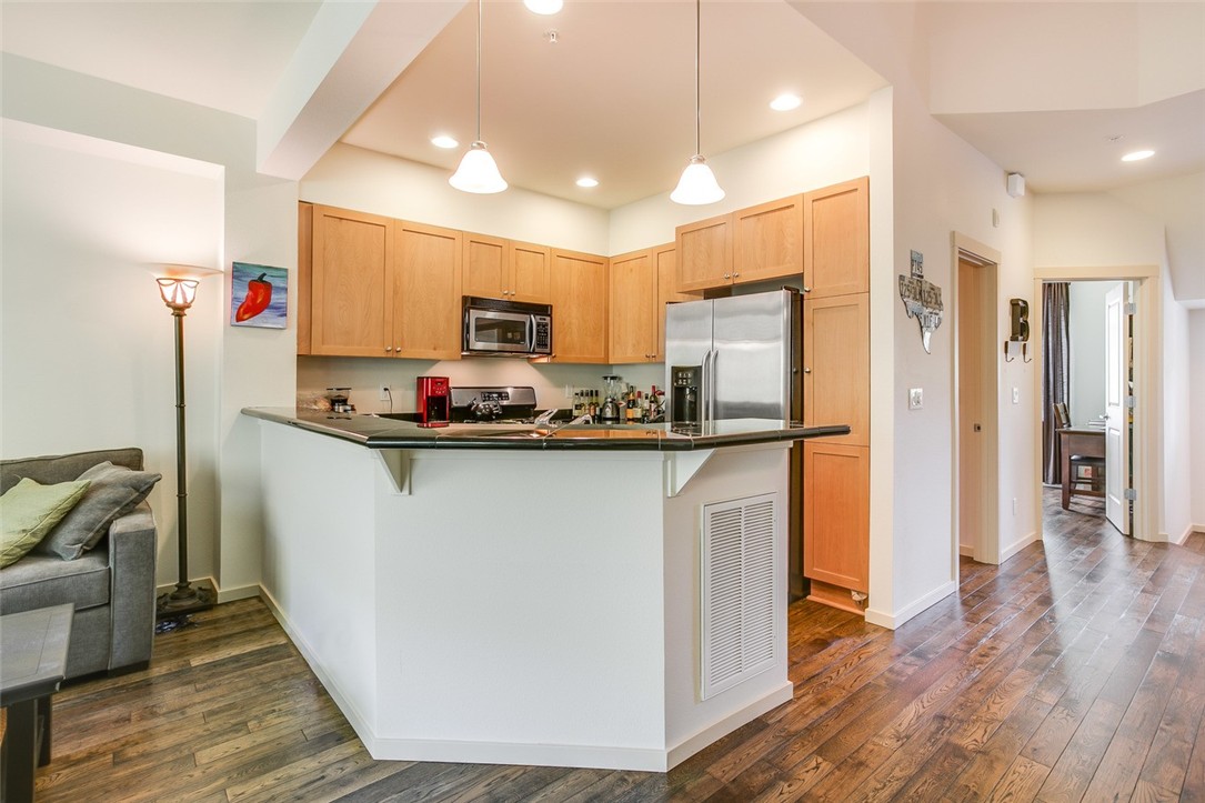 Three bedroom single family attached home at Ascent in Talus. Open concept living space with dramatic 2 story ceilings. Living room opens to large patio on protected bird sanctuary. Seller just put in $13,000 worth of real hardwood floors & a $6000 air-conditioning system for our hot summer nights. Kitchen has stainless steel appliances with granite counters. Main floor bedroom is great for office or guest room. Low $250 HOA fees include exterior maintenance and roof replacement. Pre-inspected.