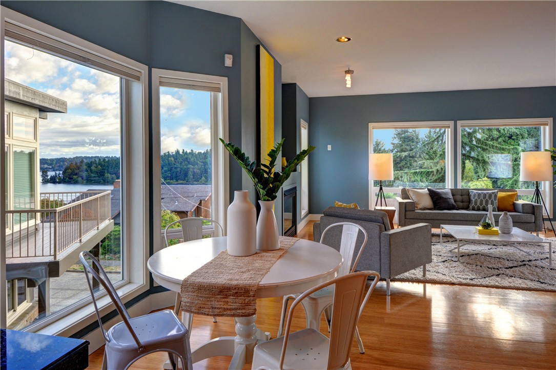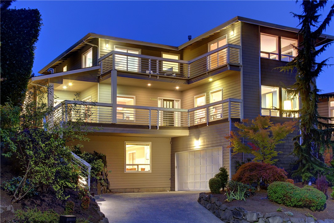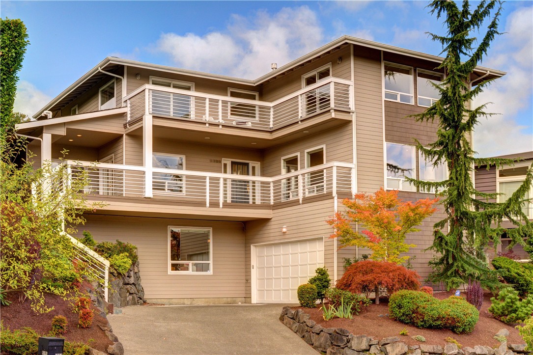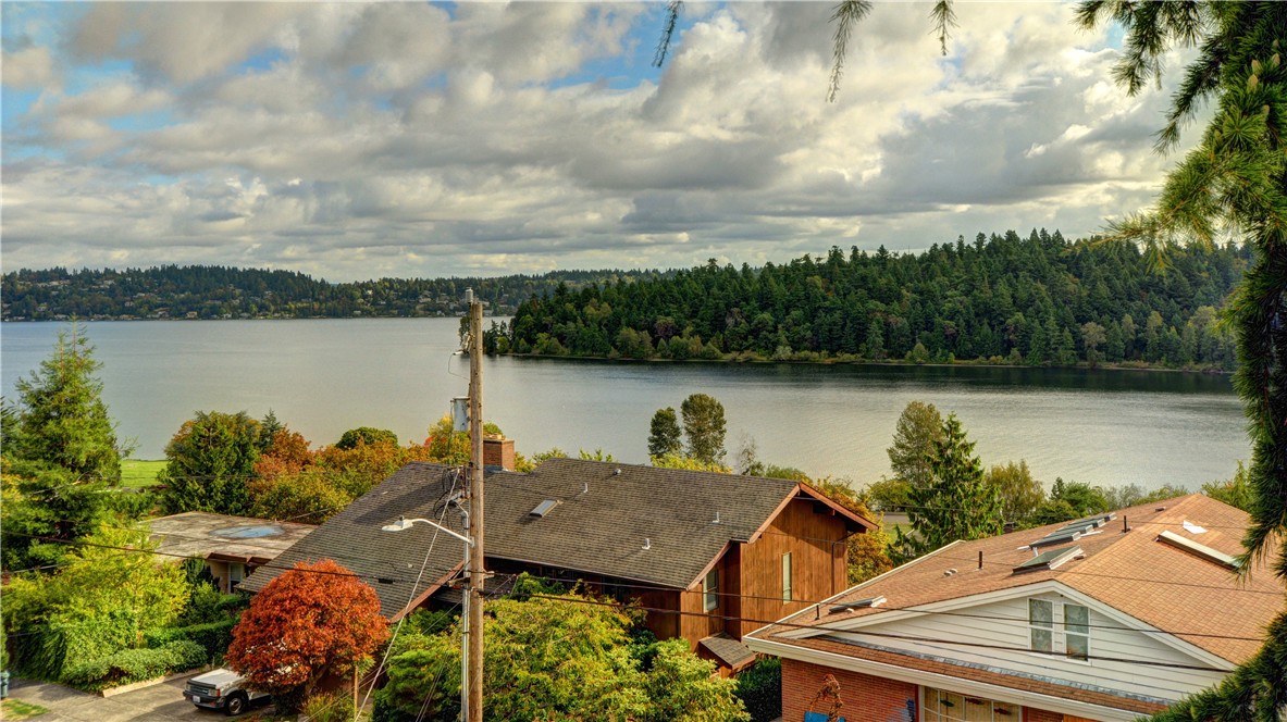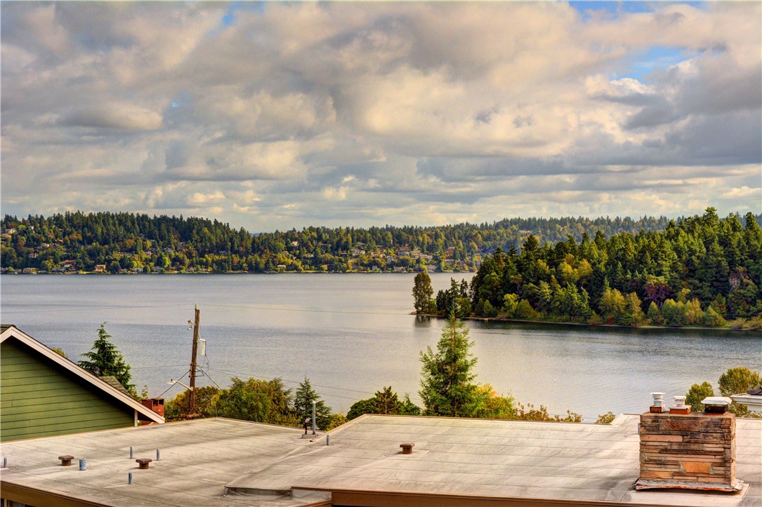 Perched above the lake, this chic abode offers an open concept, newer systems & fab amenities. Oprah'd say, "YOU get a suite! and YOU get a suite!". All 3 top-flr bdrms enjoy a walk-in closet & priv. bthrm. Lake views from master w/jetted tub & laundry. Great rm w/view, gas ckg island, pantry, 2nd laundry, gas fireplc, frml & casual dining, guest bdrm/ofc & pwdr rm. Family rm w/wet bar, 3/4 bth and...sauna! 2-car gar. Patio, garden terr & view yard. Steps to Caffe Vita & Seward Park. Mins to CC.