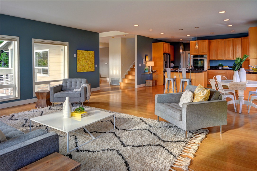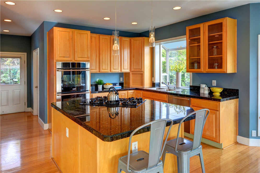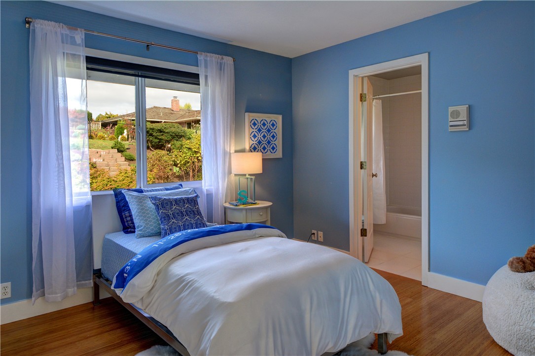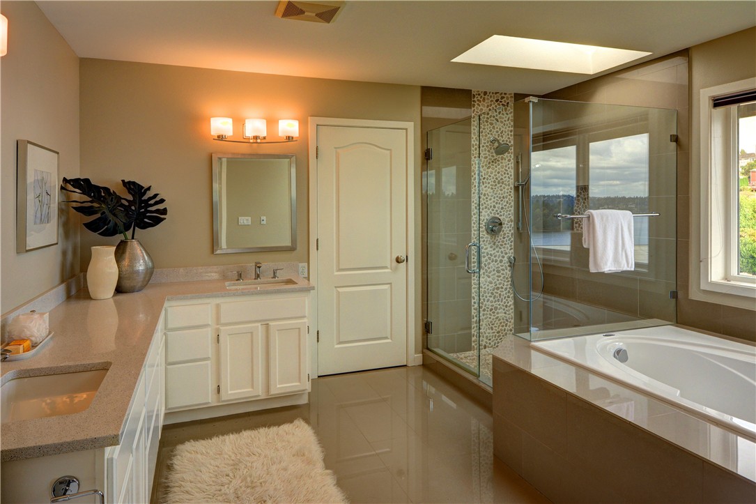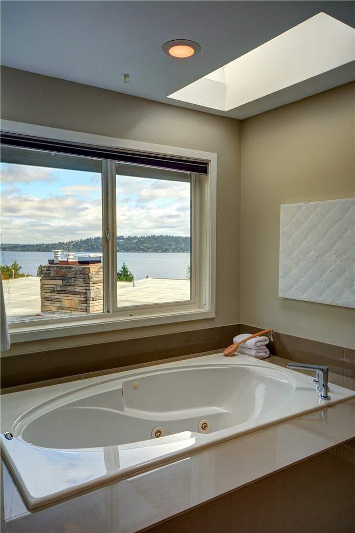 Perched above the lake, this chic abode offers an open concept, newer systems & fab amenities. Oprah'd say, "YOU get a suite! and YOU get a suite!". All 3 top-flr bdrms enjoy a walk-in closet & priv. bthrm. Lake views from master w/jetted tub & laundry. Great rm w/view, gas ckg island, pantry, 2nd laundry, gas fireplc, frml & casual dining, guest bdrm/ofc & pwdr rm. Family rm w/wet bar, 3/4 bth and...sauna! 2-car gar. Patio, garden terr & view yard. Steps to Caffe Vita & Seward Park. Mins to CC.