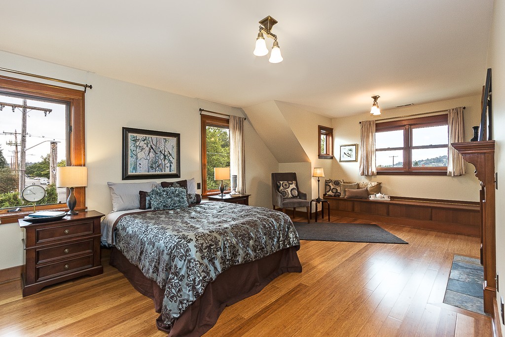 Wonderful 1905 Ballard Craftsman lovingly remodeled in 2008 featuring a 2nd story addition incl. new siding, earthquake retrofit, 2 furnaces, new wiring, lovely master bedroom w/peak downtown view, gas fireplace, walk-in closet, custom tiled full bath & balcony.2015 Updated kitchen & new lower level carpet.4Bedrooms, 2.75 baths plus office on main and family room & hobby space on lower level.Basement garage & off street prkg.Excellent location - walk to Ballard shops, eateries, bus & parks!