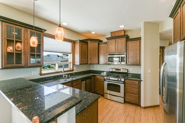 Better than new 4 BR + office & 2.5 BA home on cul-de-sac, nearly 2,300 sf. Great room w/vaulted ceilings w/gas fireplace. Beautiful kitchen w/eating island, SS appliances, & slab granite tops. Main floor master w/jetted tub, shower, dual sinks & walk in closet. Upstairs w/3 BR’s one that could be a bonus room plus rec. area. Stunning landscaped lot, approx. 10,454 sf w/large stamped concrete patio & driveway, deck, garden trellis w/fire pit area, beverage frig, raised beds, shed & RV parking.