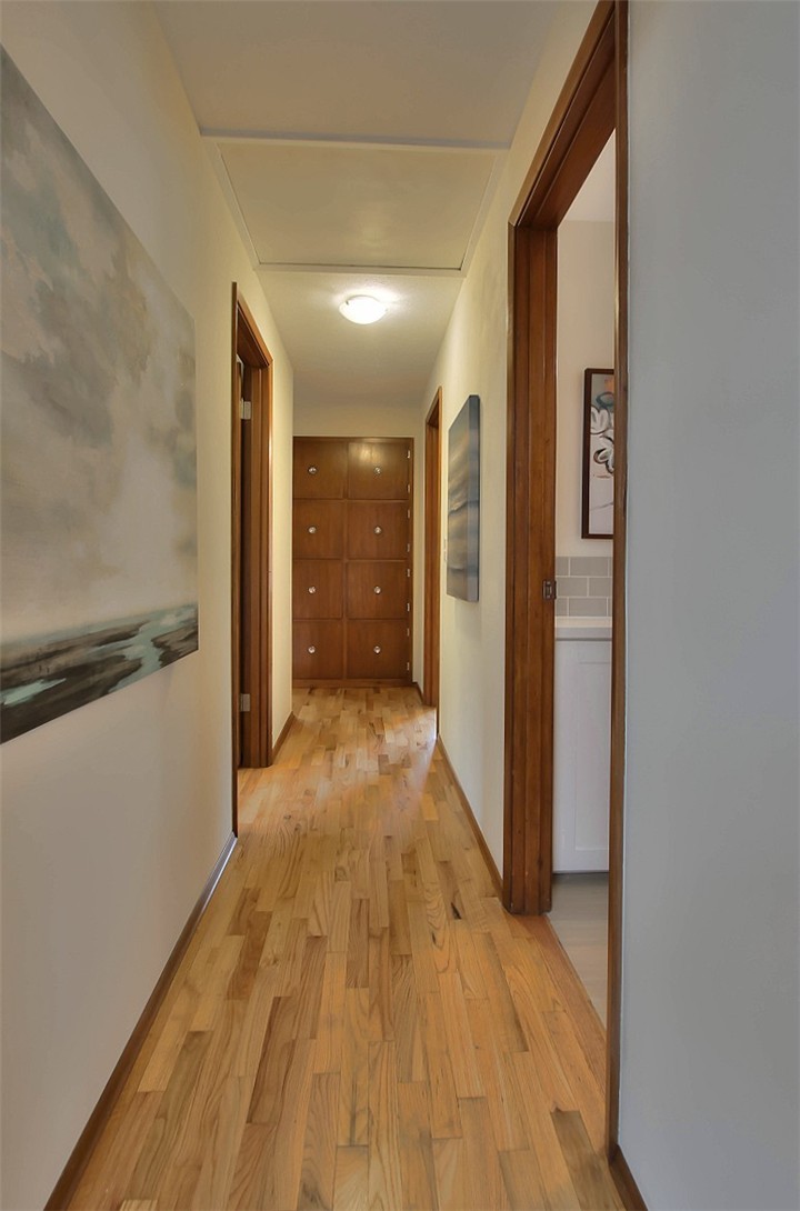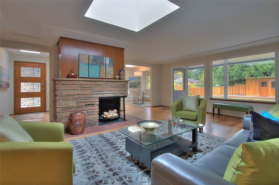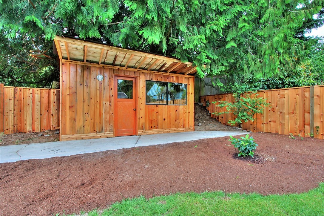 A 1956 original with a modern twist. The skylights, double sliders and window banks create a unique indoor / outdoor feeling that is very inviting and livable. This home flows wonderfully with 3/4 bath off master and a centrally located kitchen. The main living spaces are oriented to the back yard and the picture is completed by a rustic garden shed built from reclaimed materials. There is something for everyone in this
