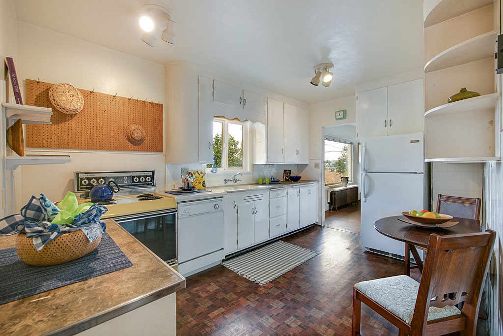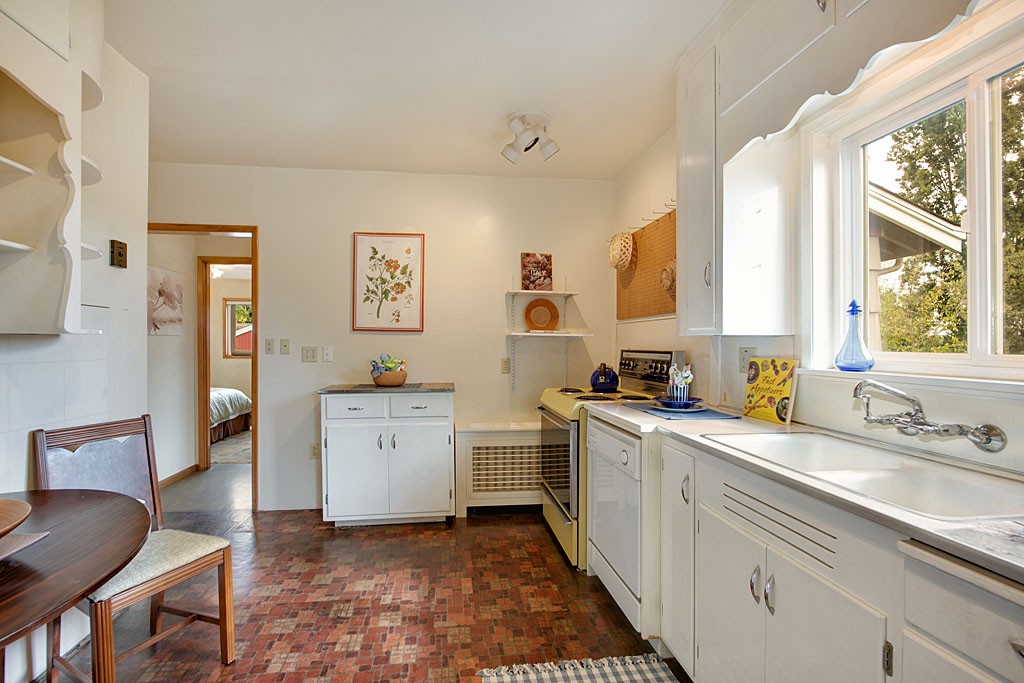 This 1919 well loved Fremont Charmer awaits your personal touches. Larger than it appears! The classic glassed in front porch entry leads to the large formal living & dining areas with beautiful hardwood floors. Rare... 3 bedrooms on the main level. Two more bedrooms on the lower level + second kitchen & large family room allows for easy conversion to MIL unit. Top this off with an oversized 2 car garage with shop + private level rear yard for enjoying outdoor dining or gardening.