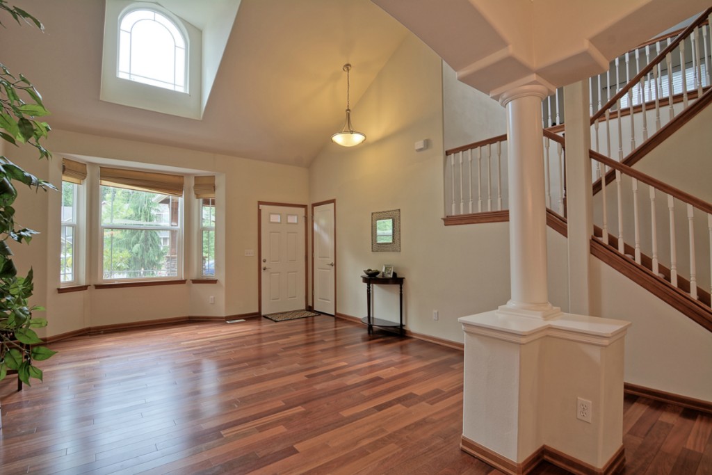 Amazing price at $166 per square feet for an 8 year old Bothell home! Beautifully maintained 4 Bedrooms, Den, Loft & 2.5 Bath home with 2,765sf of open interior living space. Soaring ceilings and gleaming hardwoods throughout main floor, formal living & dining areas as well as casual spaces for day to day living. Inviting kitchen with ample counter & cabinet space & black appliances (all stay), open family room with cozy gas fireplace & more. Luxurious master suite and ideal Cul-de-sac location.