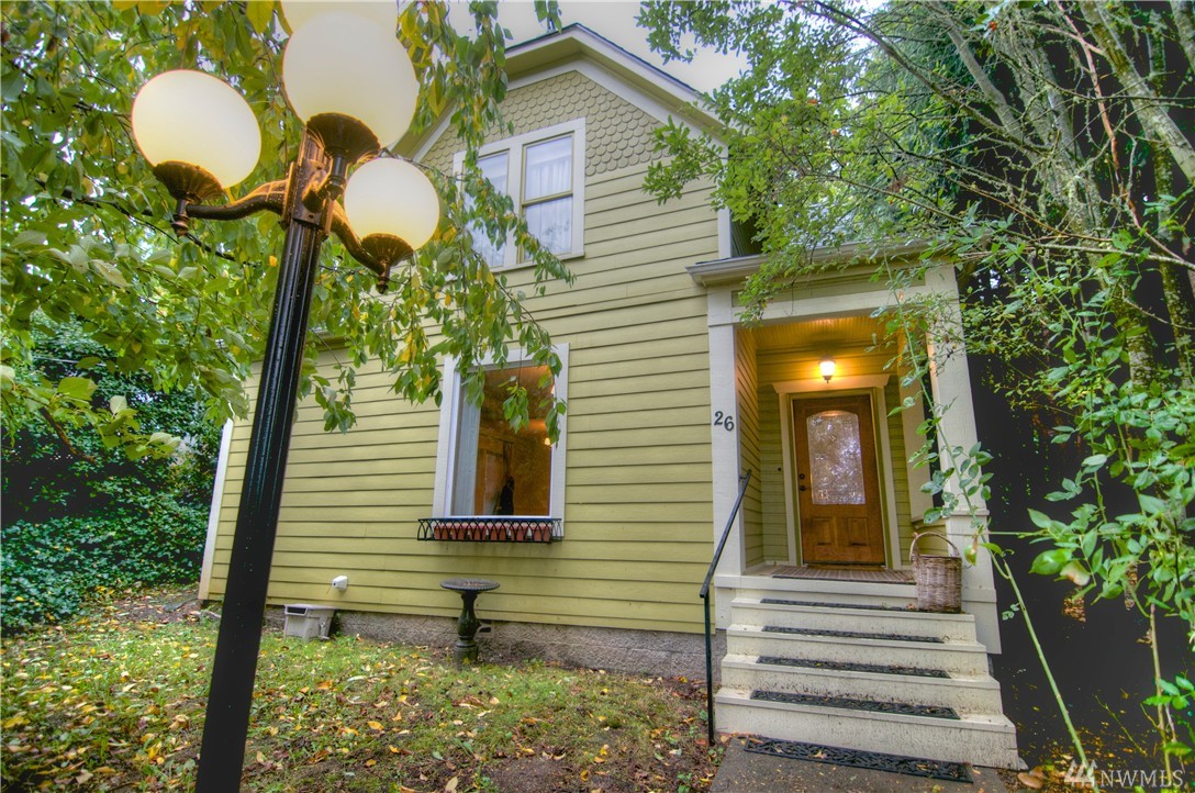 Absolutely adorable, charming, victorian home nestled up on the hill, surrounded by trees. Large front window and an inviting front porch. You'll want to spend hours in the warm living room enjoying the gas log fireplace. Nice patio through french doors overlooks a very private, quaint and cozy terraced backyard. Lots of details throughout to keep with the era of the home. With new carpet, some paint and a few cosmetic repairs, this home will impress. You must see inside to appreciate.