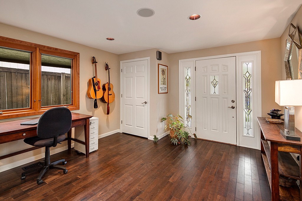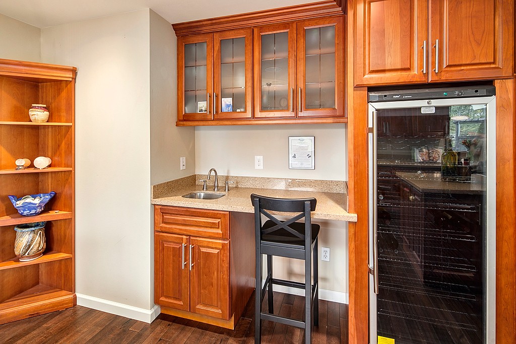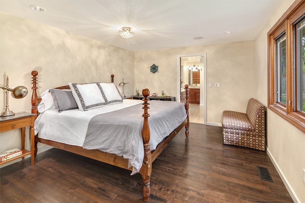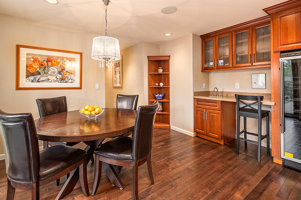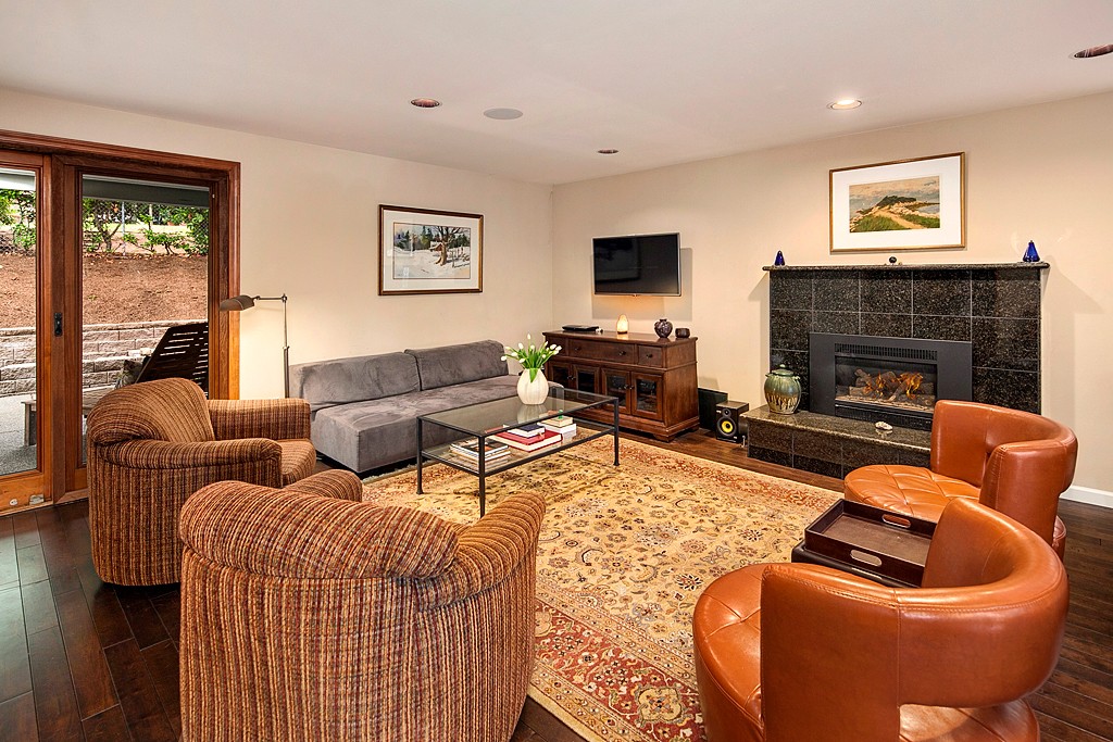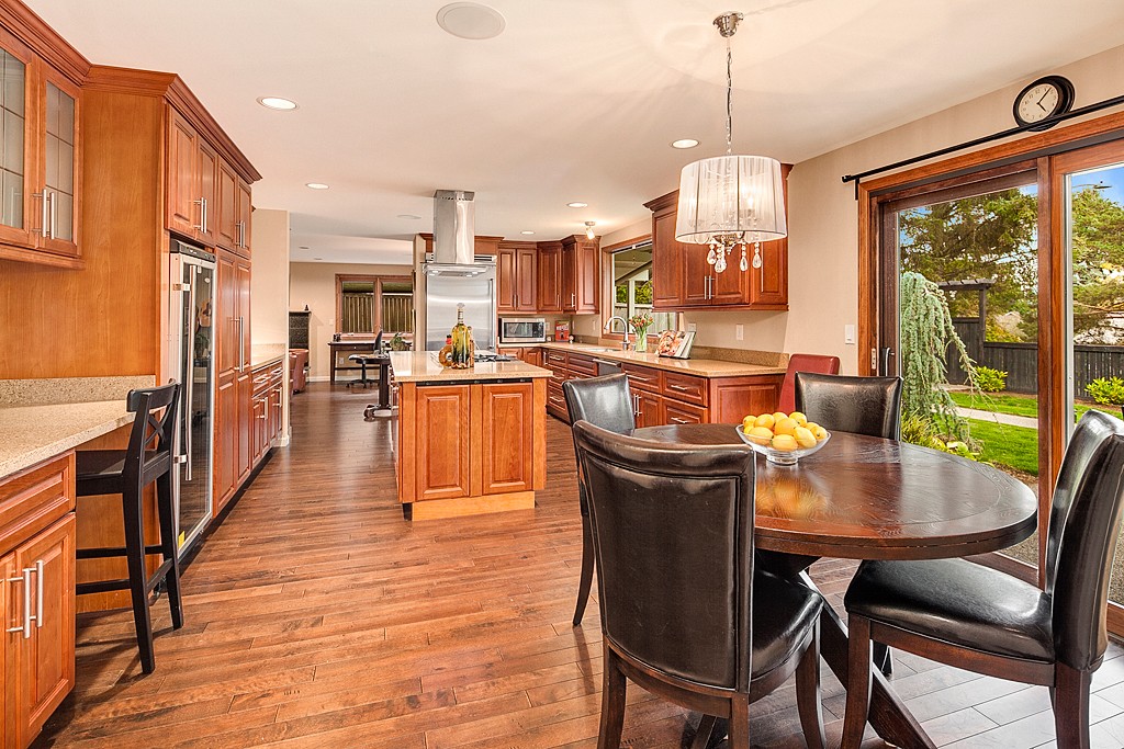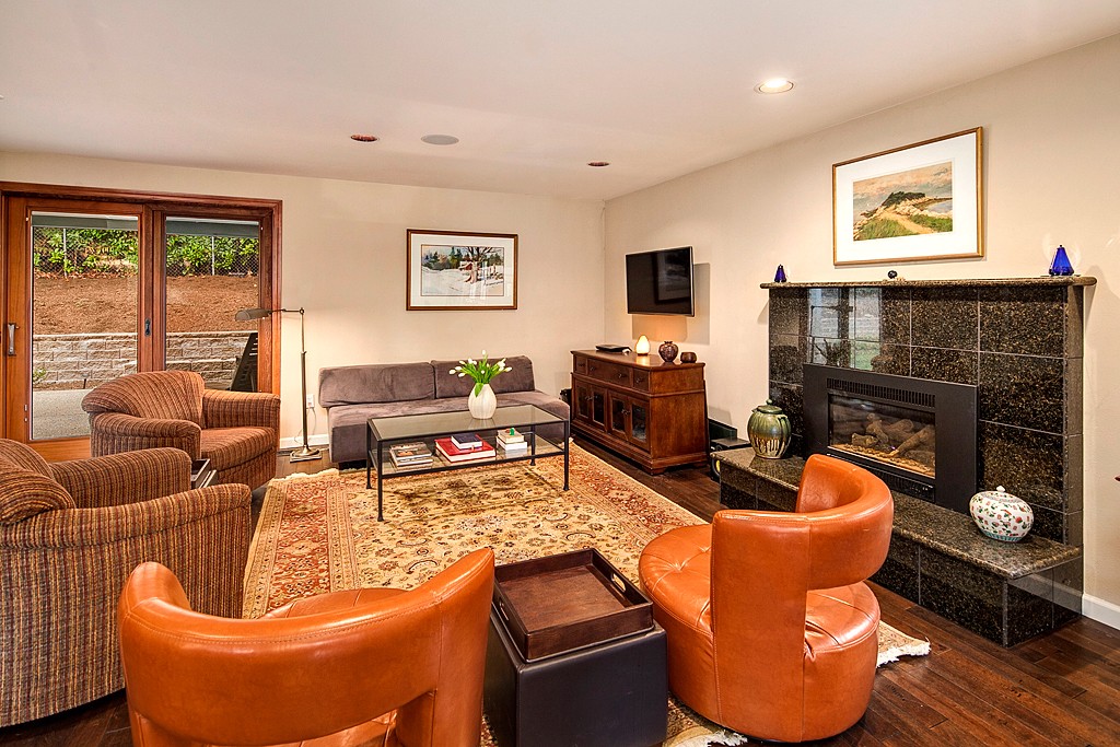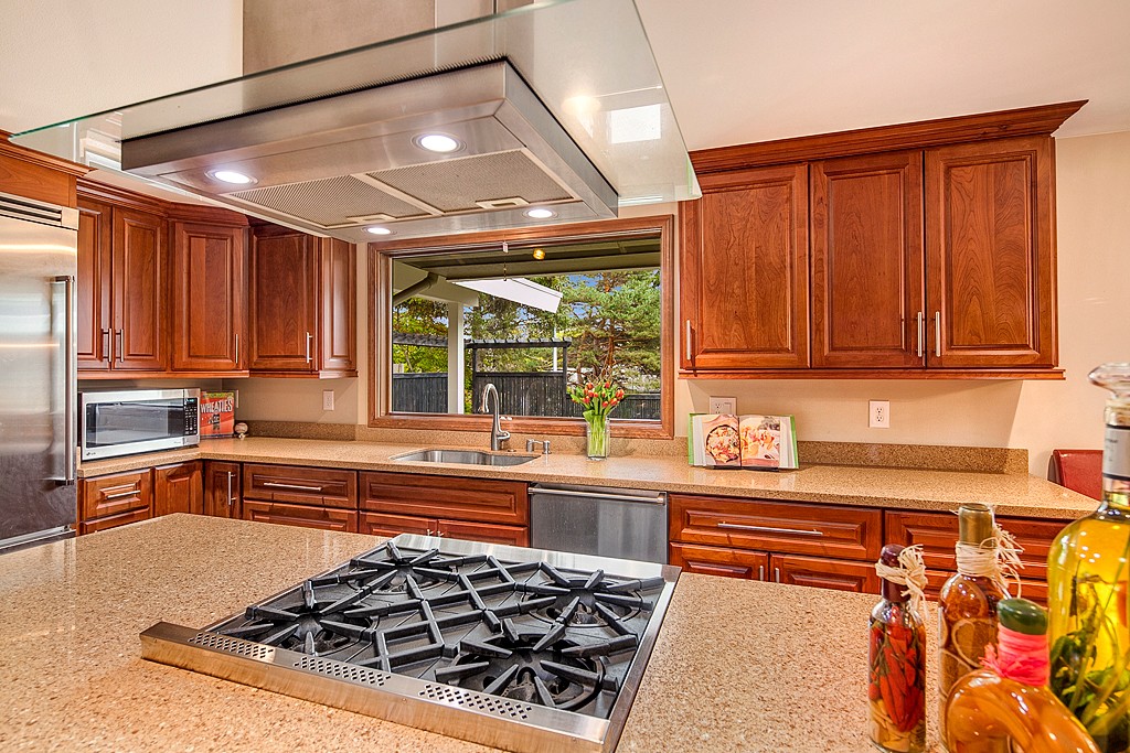 Beautifully remodeled in 2013, this Bellevue rambler is close to Microsoft & downtown.Desirable open plan great for entertaining,features gourmet kitchen w/stainless appliances,slab granite,custom cherry cabinets.Great Room has oversized gas fireplace & access to covered outdoor patio.Large master suite with walk-in closet,luxurious bath, his/hers vanities. Espresso-stained hardwood throughout;integrated audio, security;Pella triple paned wood windows w/screens & blinds; new walkways and patios.
