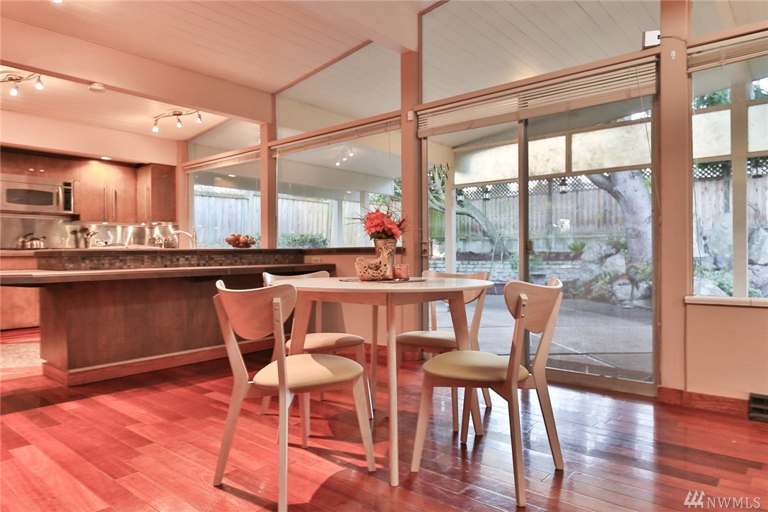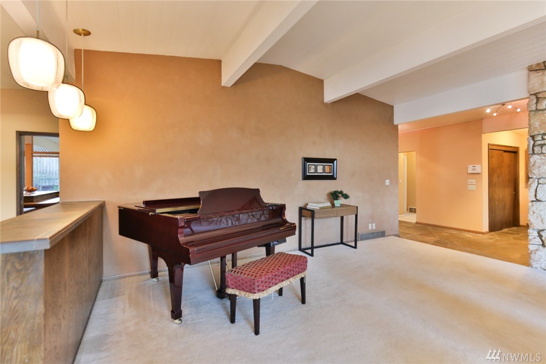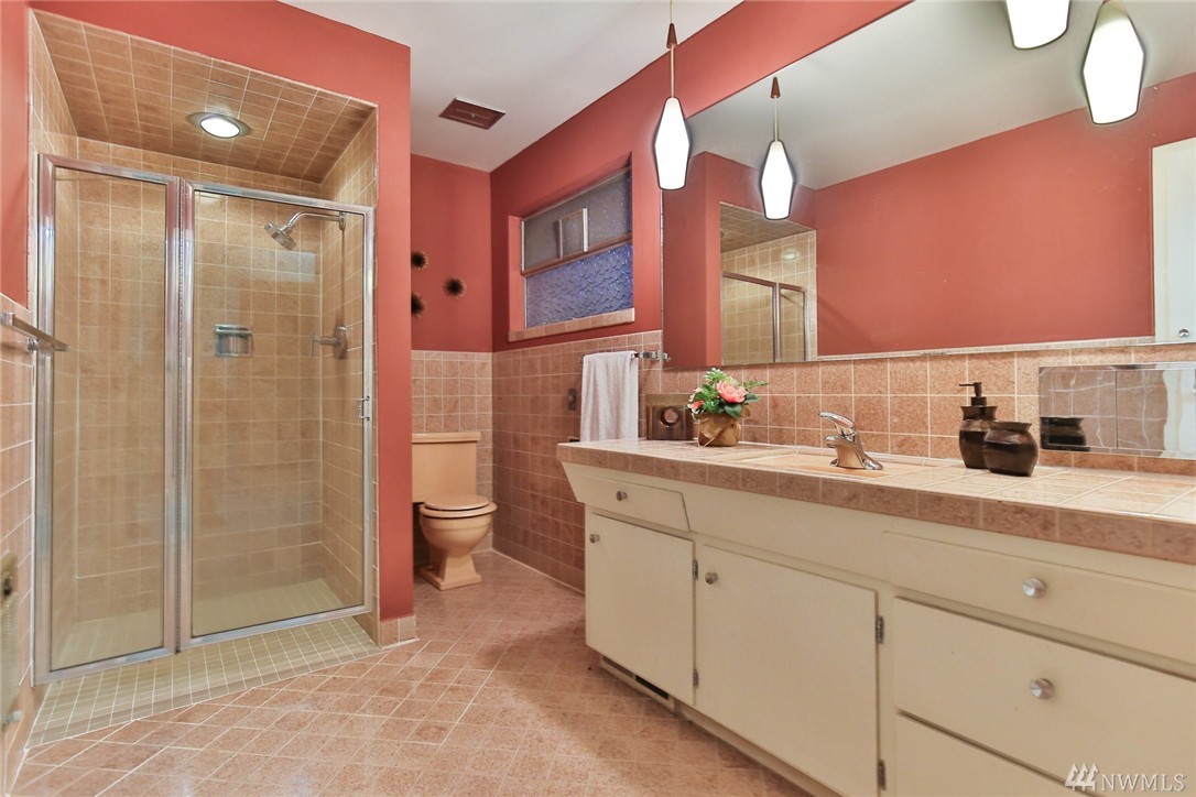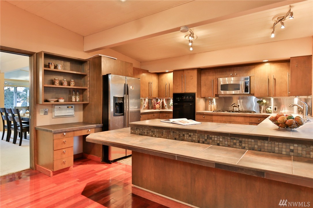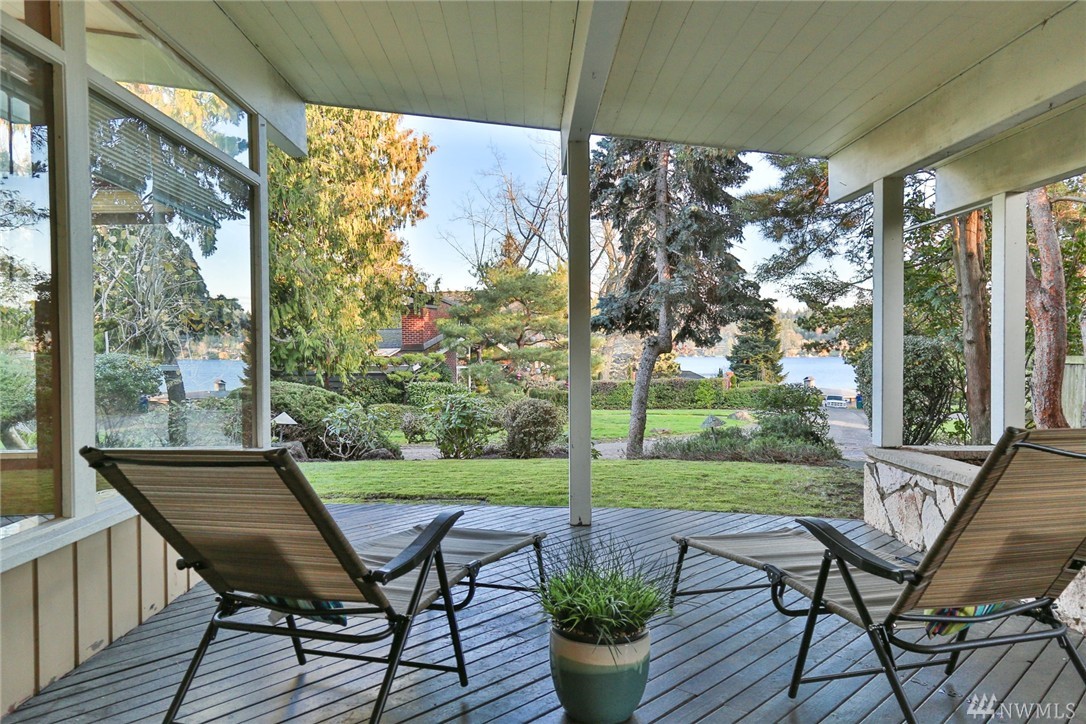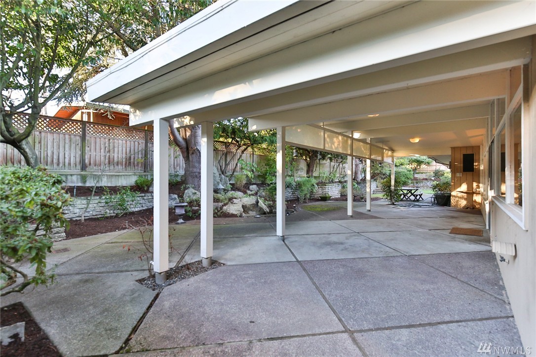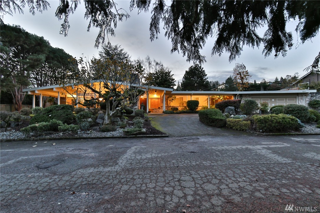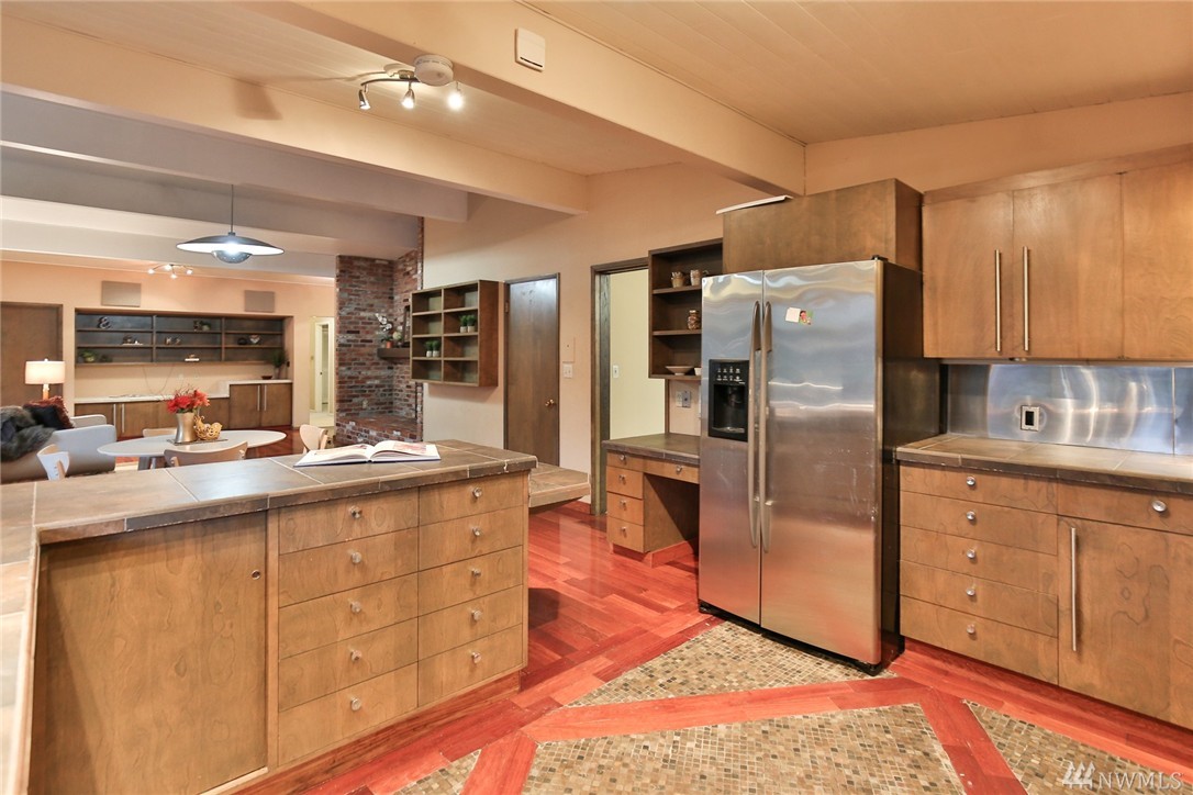 One of a kind custom built (for U.S. District Court Judge) mid century modern, one level, on quiet, dead end street. Exterior Montana Rock walls. Xtra lg. liv and din rms with vaulted, wood, beamed ceilings, rock firepl, wet bar, built-in's, view of lake. Walls of windows, open floor plan. Lg kit, ideal for gatherings. Huge fam rm off kit with gas firepl. Perfect home for entertaining inside or out (covered patios front/back). Mstr bedrm w/ walk in closet and built-in vanity.