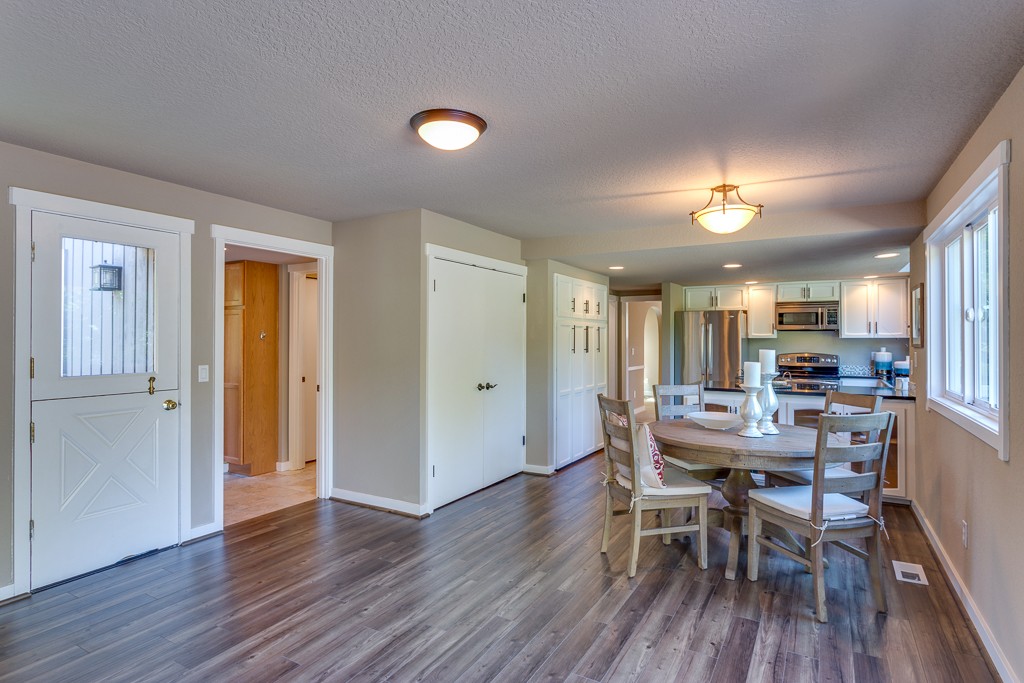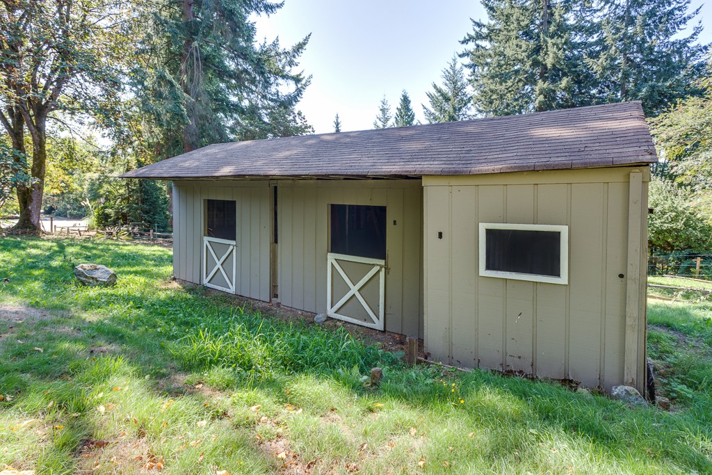 Dutch Colonial Farmhouse on sunny and bright End of Cul de sac lot with 2 stall barn in the heart of Hollywood Hill just moments to world famous Wine District of Woodinville. Professionally restored with new interior paint, roof, hardwood floors, carpets, countertops and light fixtures. Home sits smartly "up on the lot" for great street appeal. Fully applianced home including washer, dryer and refrigerator!!Great expansive level yard with orchard, fenced off pasture with barn & brick patio.