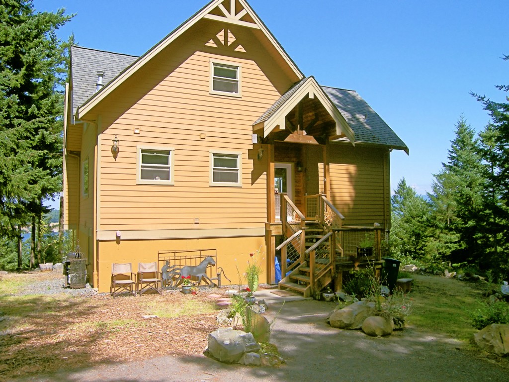 Standing proud in the treetops at the end of the road is this faithfully maintained, two bedrm/2 bathrm open and airy home. You'll love the gorgeous hardwood floors! Vaulted ceilings & a clerestory bank of windows open to views of Mt. Baker, Hales Passage & the night lights of Bellingham. Enjoy the abundant bird life, views and more from your deck. Fantastic walk-out daylight basement can be used as a great room and has a ton of options for you to explore. Short walk to boat launch and lake!