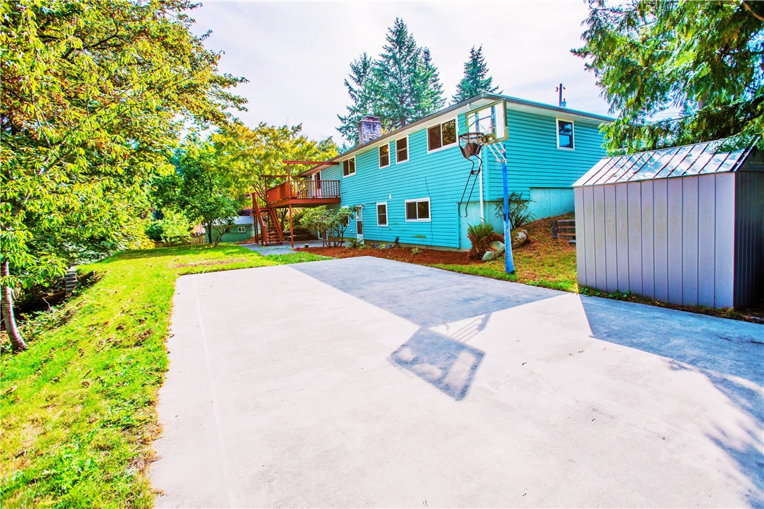 This wonderful Ray Anderson Level Entry with Daylight Basement home features space, space, and more space! Located In the Desirable Echo Lake Neighborhood. This 4 BR, 2.75 bath home features gas heat, double pane windows, new paint, carpets, hardwoods, and roof! Spacious inside and out, featuring Athletic Court, Deck and Fruit trees. Enjoy the peaceful cul-de-sac community with quick and easy access to shopping, bus lines North and South and freeway. Outbuilding/shop in back yard.