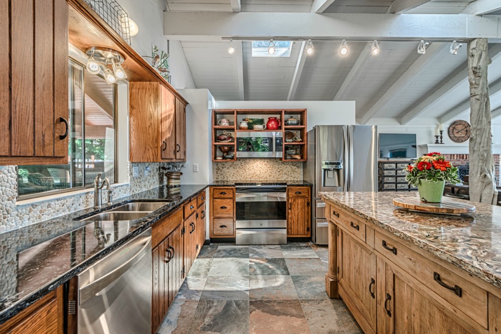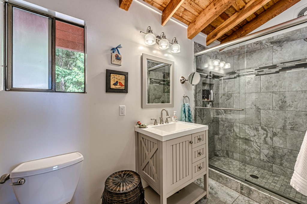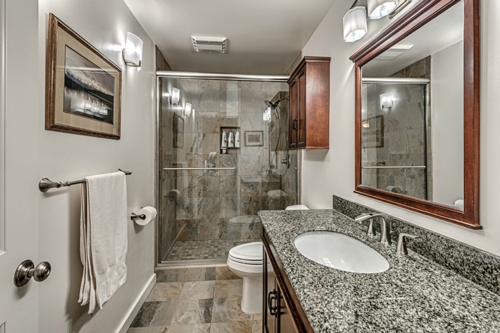 Newly remodeled & upgraded home! Enjoy all that nature has to offer w/ views of the mountains & marina. Enjoy warm summer evenings on the large partially covered deck. Relax in the great room w/ lots of windows to allow ample natural light. Main level living w/ conveniently located master suite. Lower level features 2nd master suite, 3rd bedroom, bath & living room w/ built-ins & minibar. Easy maintenance landscaping, tons of privacy w/ a large green belt. Home is on Leased Land.
