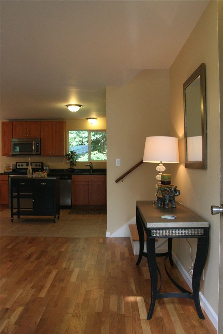 Beautiful Tri-Level with over $50K in major home renovations & landscaping.Secluded privacy on 3 sides nestled on a sensational lot. Desirable open floor plan is great for entertainment & features a fabulous NEW gourmet kitchen,stainless appliances &slab granite counters.Great room offers fireplace&access to private yard with Deck & firepit. 3 bdrms+spacious bonus,den/4th bdrm &2 NEW baths. New energy efficient windows throughout. Walking distance to grocery,swim&tennis club,shops&Newport park.