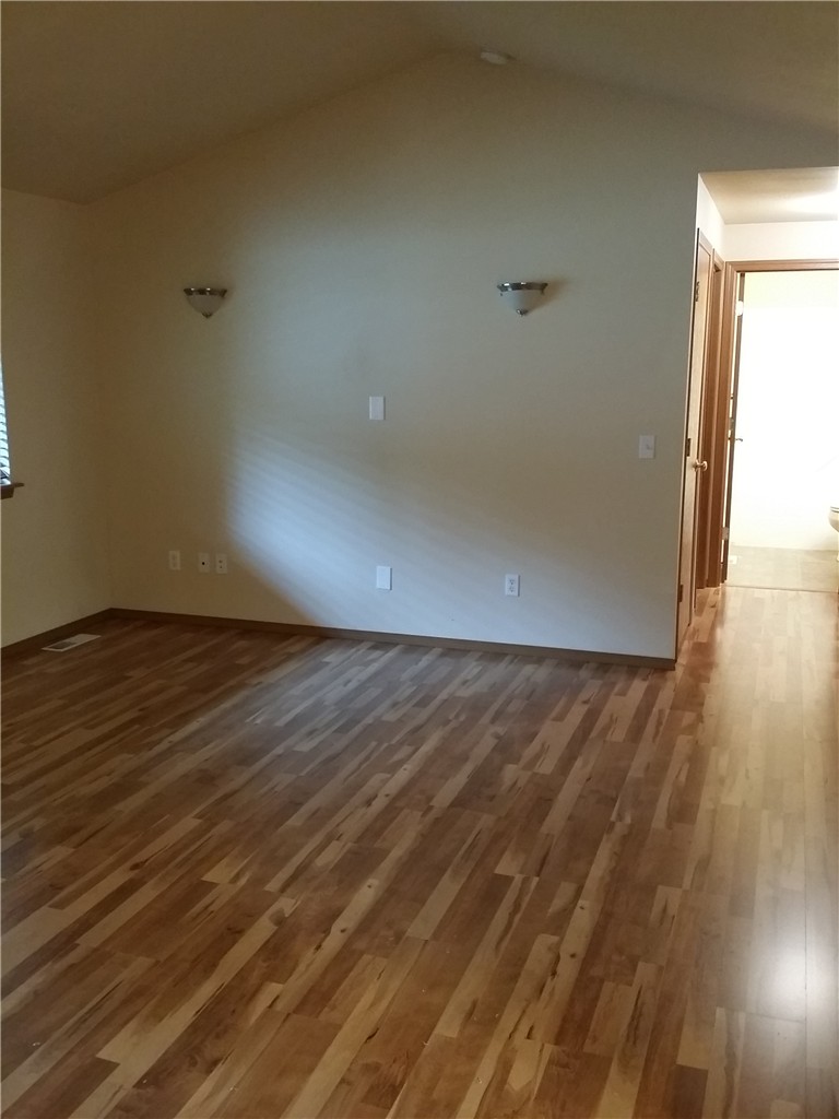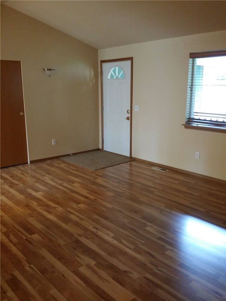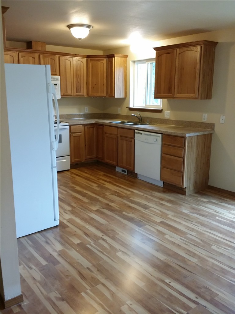 Well maintained, clean and move in ready. This split bedroom floor plan home has new carpet in bedrooms and new, lovely laminate floor throughout rest of home. Ample sized master bedroom has 2 large closets, ceiling fan and private bathroom. All appliances included. Yard is low maintenance with back yard sloped and covered with natural vegetation. Deck off dining area with stairway leading down to back yard.